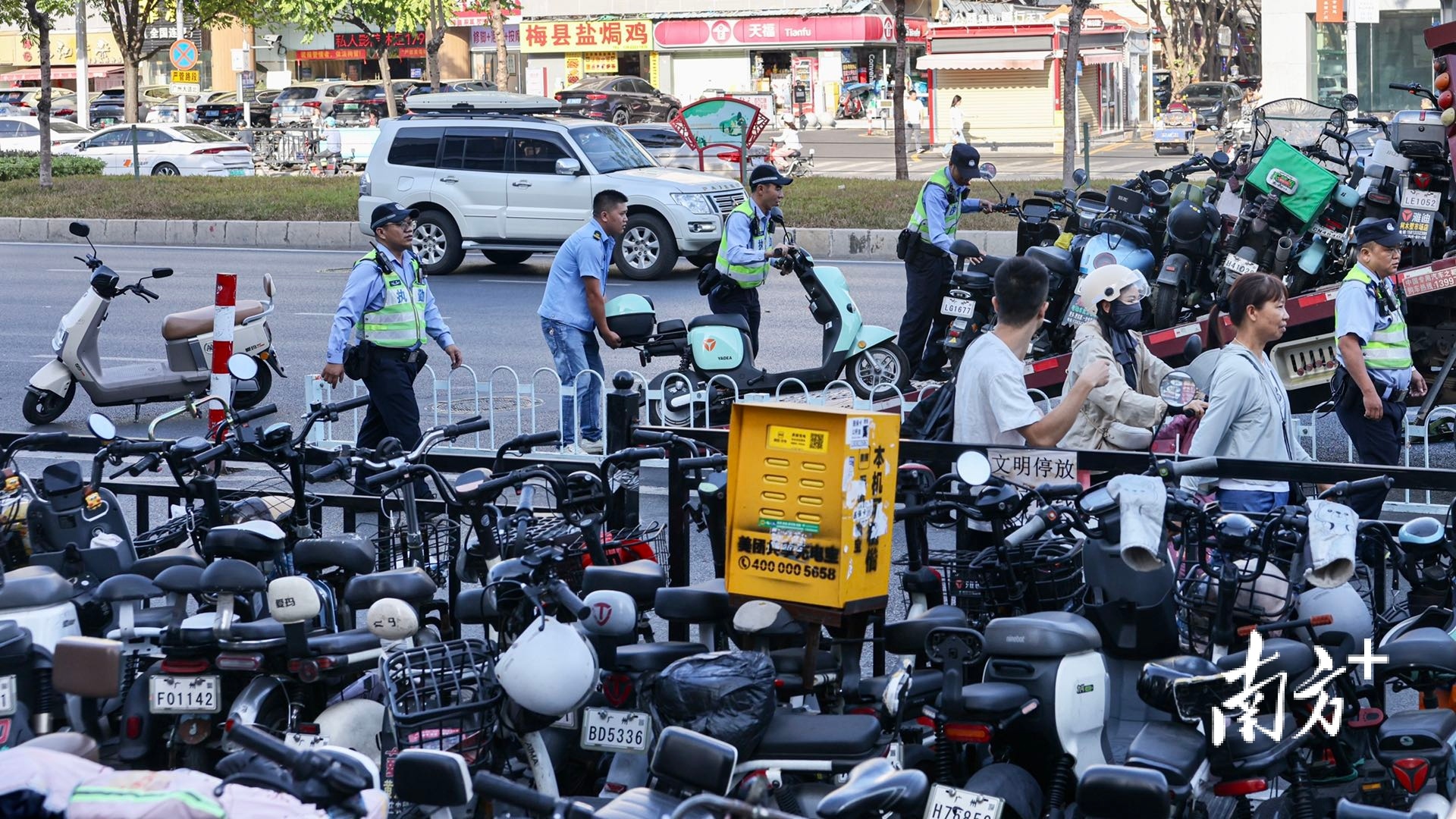 有道路旁商铺人员称,滘口客运站接驳滘口地铁站,周边客流量大,机动车、非机动车停车位都紧张,近来常有工作人员过来把电动自行车摆齐,让行人更方便通过。