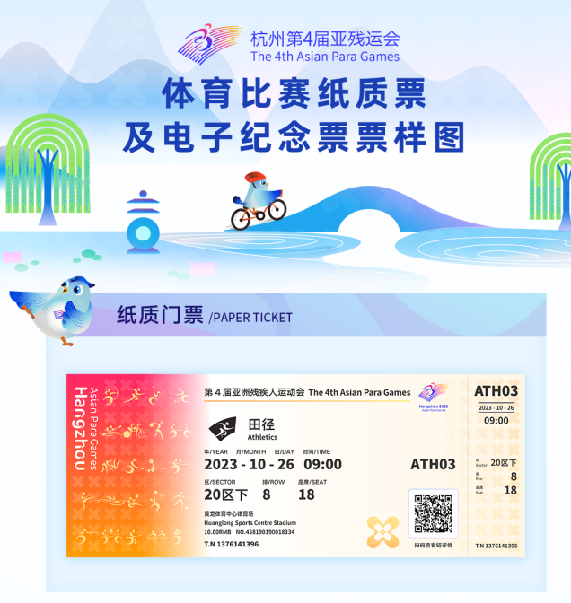 杭州亚残运会门票启动线上销售,票面设计以“折桂”为主题