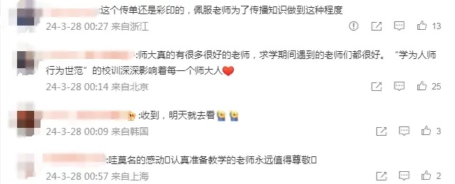 记者发现,这批视频最早上传于3月24日。在B站视频下和其他社交平台上都有不少网友留言。大家都在赞赏其传播知识的善举,纷纷表示自己被这种行为打动。