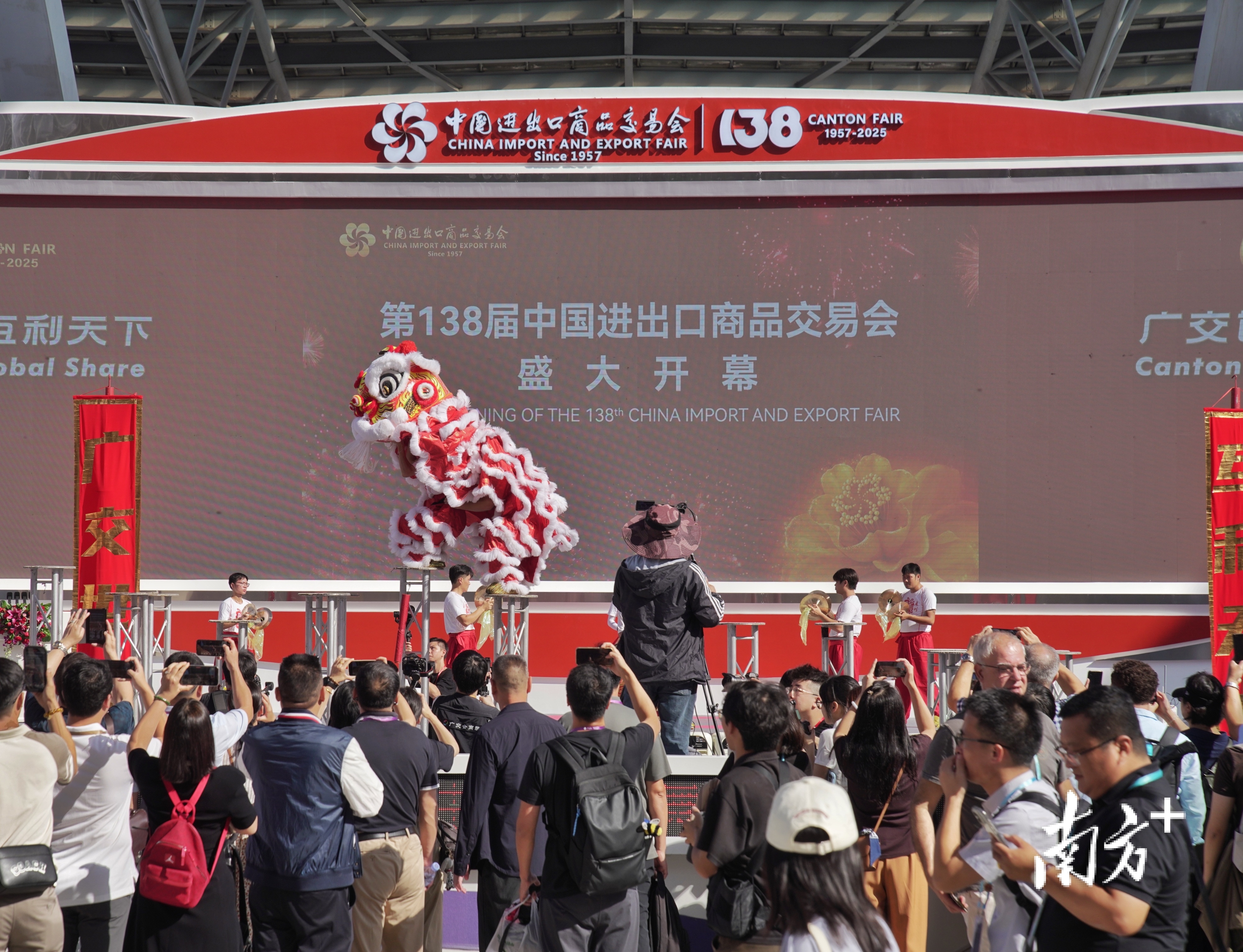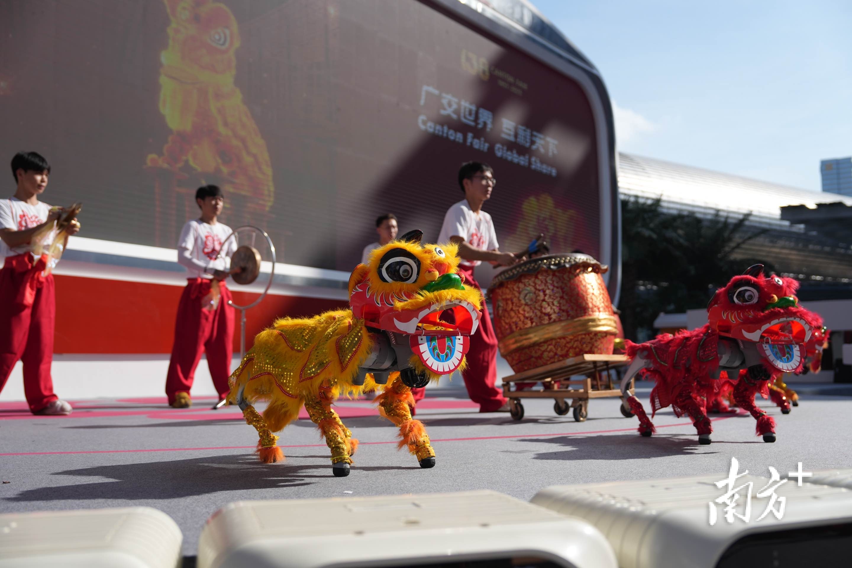 (南粤龙狮助阵、机器狗表演,广交会开馆仪式太有排面了,视频时长共22秒)