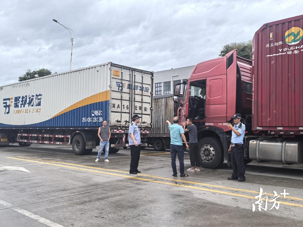 “接到拥堵消息后,我们第一时间联合交警六中队赶赴现场。”花东镇平安法治办相关负责人介绍,工作人员抵达时,周边红绿灯路口已出现明显交通堵塞,现场随即成立临时协调小组分工处置:交警六中队警力负责分段疏导现场车辆,避免拥堵范围扩大;平安法治办工作人员则紧急联系物流园区管理方及多家涉事物流企业,快速协商车辆安置方案。最终,在交警的现场引导下,滞留车辆分批次有序进入园区停放;同时,工作人员通过物流企业工作群发布台风天通行预警,提醒尚未出发的车辆暂缓行程。