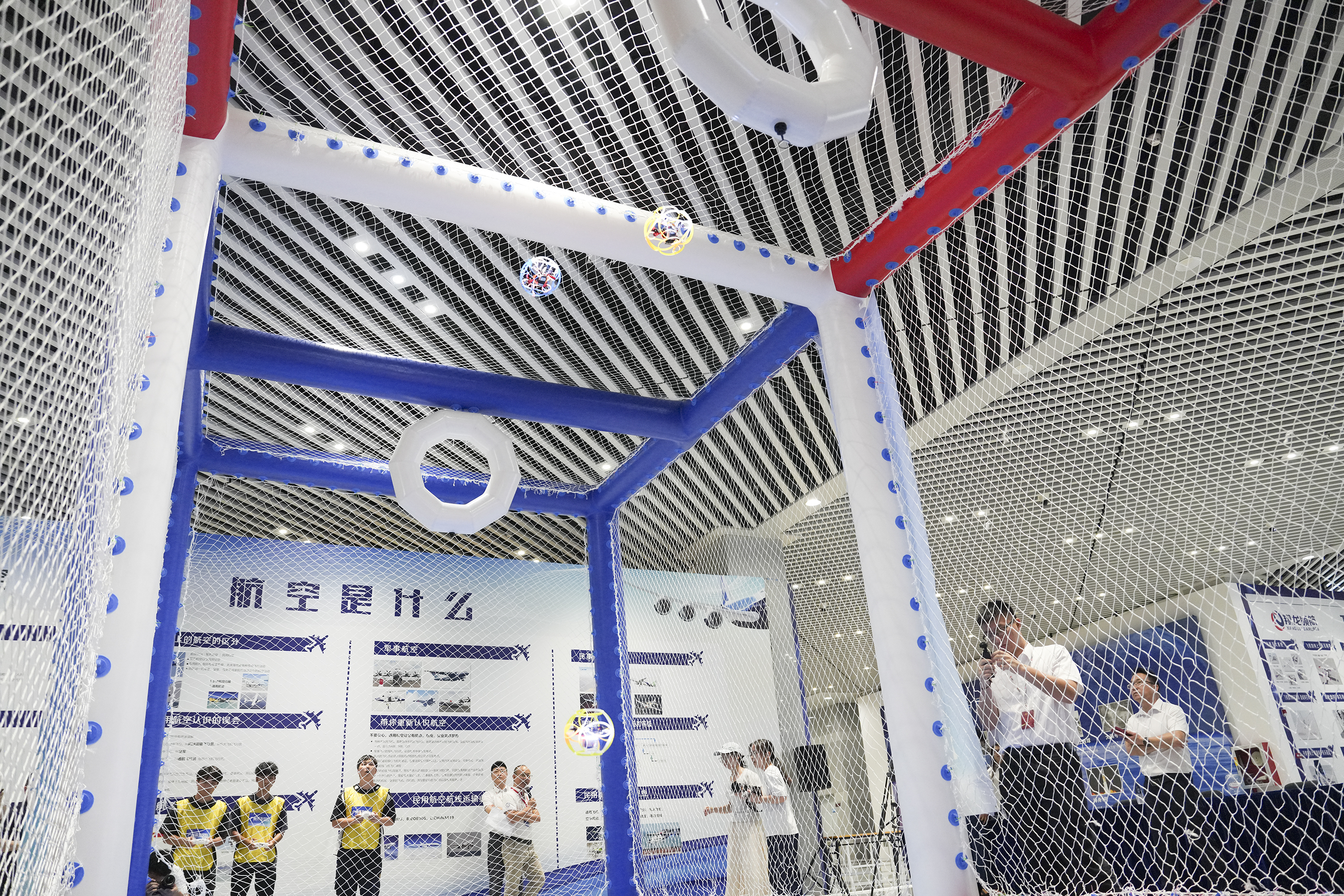比赛现场,选手操控球形无人机灵活穿梭,或精准突破防线实现有效得分,或巧妙干扰防守避免对手进球,“乌龙球”“连续得分”等精彩瞬间不时引发观众掌声。