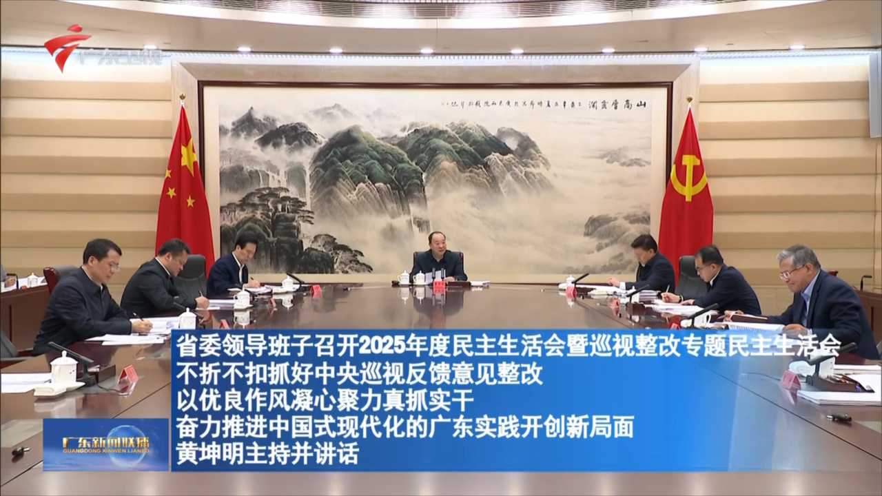 省委领导班子召开2025年度民主生活会暨巡视整改专题民主生活会 不折不扣抓好中央巡视反馈意见整改 以优良作风凝心聚力真抓实干 奋力推进中国式现代化的广东实践开创新局面 黄坤明主持并讲话