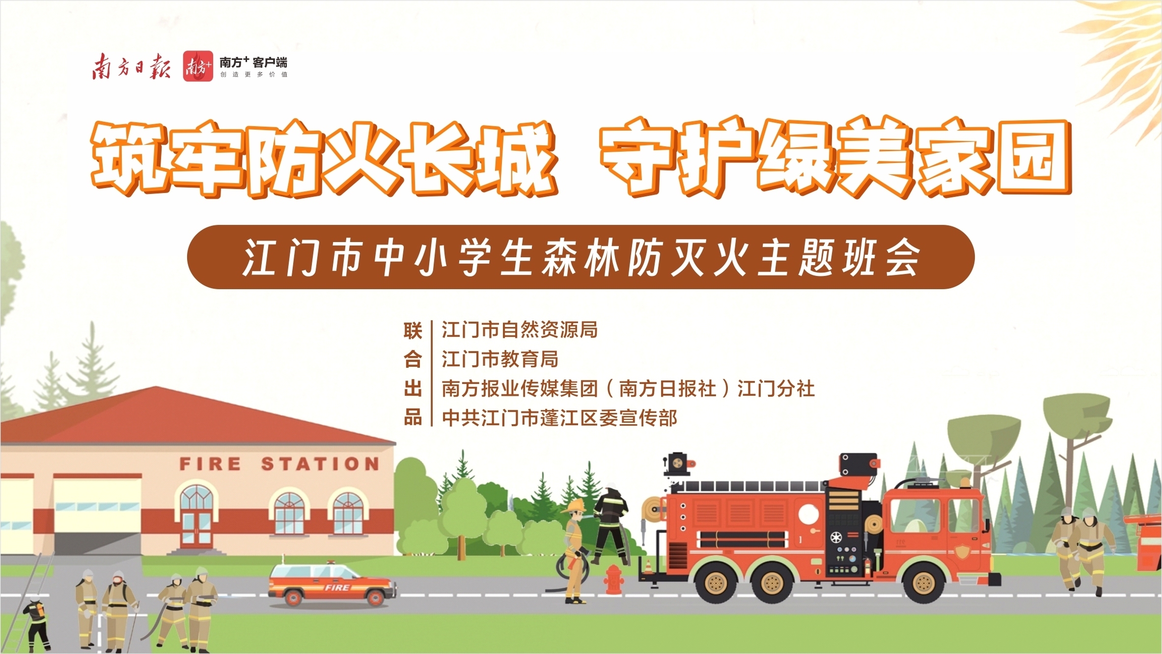 为深入贯彻落实江门市森林防灭火工作会议精神,切实加强森林防灭火宣传教育工作,南方报业传媒集团(南方日报社)江门分社联合江门市自然资源局、江门市教育局、中共江门市蓬江区委宣传部,利用“假前安全教育班会课”的关键节点,面向全市中小学生开展“筑牢防火长城,守护绿美家园——江门市中小学生森林防灭火主题班会”(点击链接,即可进入直播间),邀请我省森林防灭火专家结合具体案例,通过专业生动的讲解,系统普及森林火灾危害、预防知识、应急避险及法律法规,并借助“小手拉大手”形式,将森林防火意识传递至家庭、辐射至社会,凝聚全社会共同参与筑牢森林防火的人民防线,守护江门绿水青山。