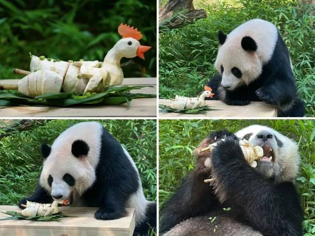 动物园给熊猫“婷仔”准备的白切鸡下午茶 图源:广东台触电新闻