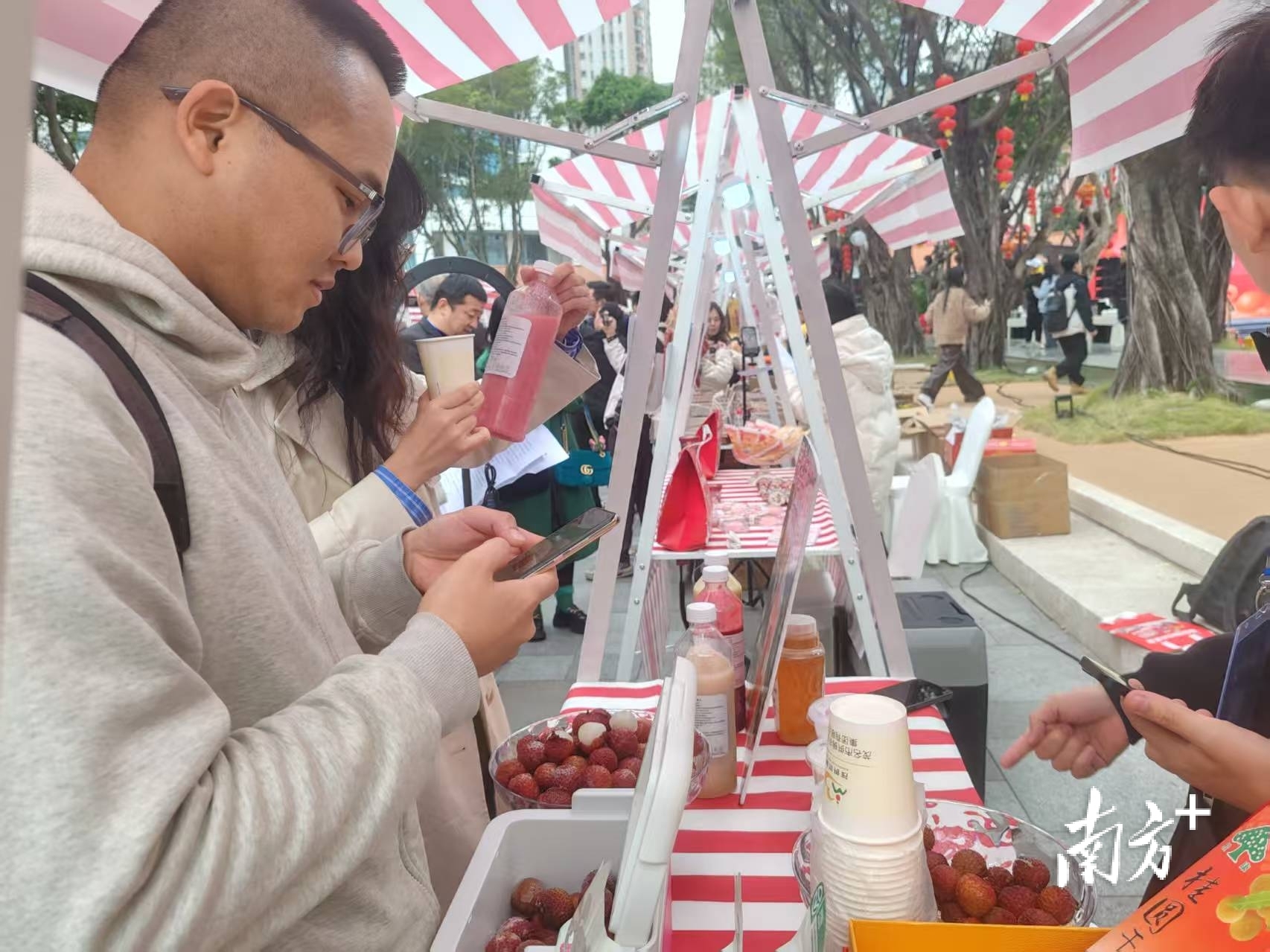 “我们带来展出的产品,很快就被一扫而光了。”茂名市供销农业发展集团副总经理、现场摊位负责人梁春燕告诉南方+记者,现场带去了冻眠荔枝、荔枝雪糕、荔枝干、荔枝蜂蜜等系列荔枝深加工产品,搭配茂名罗非鱼同台展出,凭借原生态品质与特色风味圈粉众多市民。“尽管气温偏低,现场咨询、品尝与选购的市民依旧络绎不绝,充分彰显茂名农产品的市场魅力。”梁春燕说。