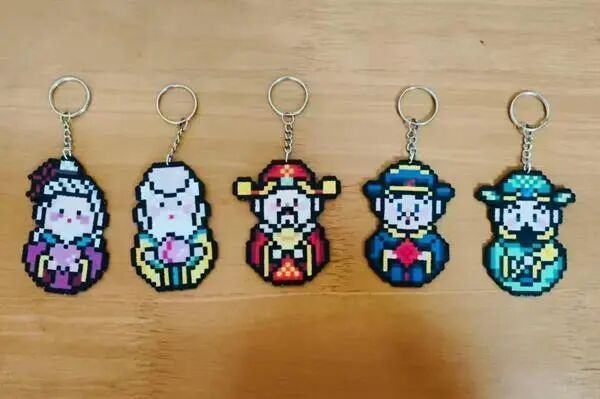 ▲亓楚钧制作的拼豆春节挂饰。来源:亓楚钧