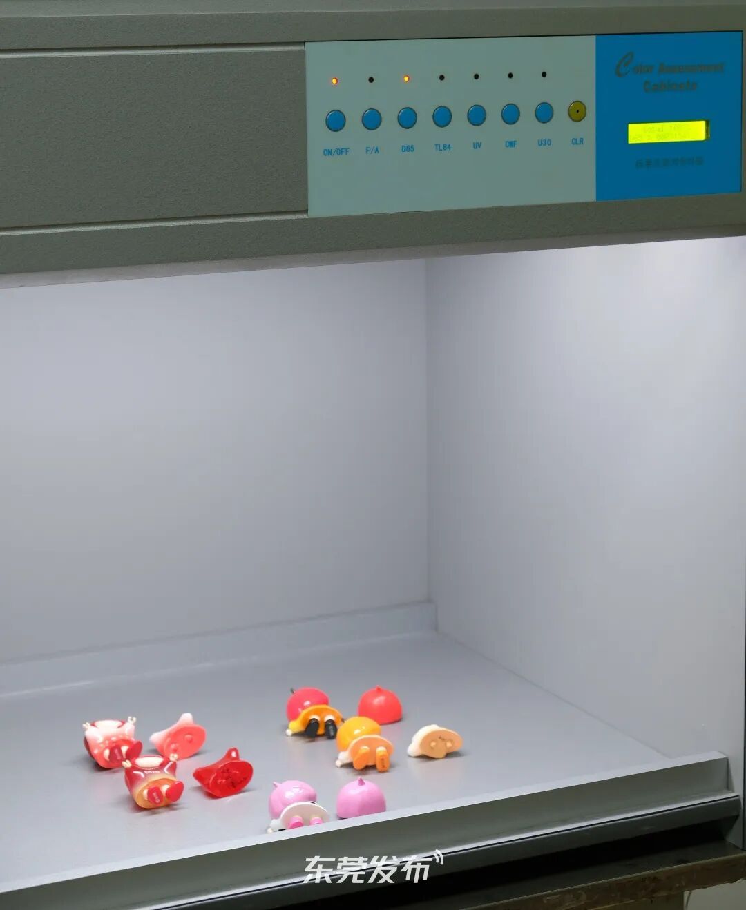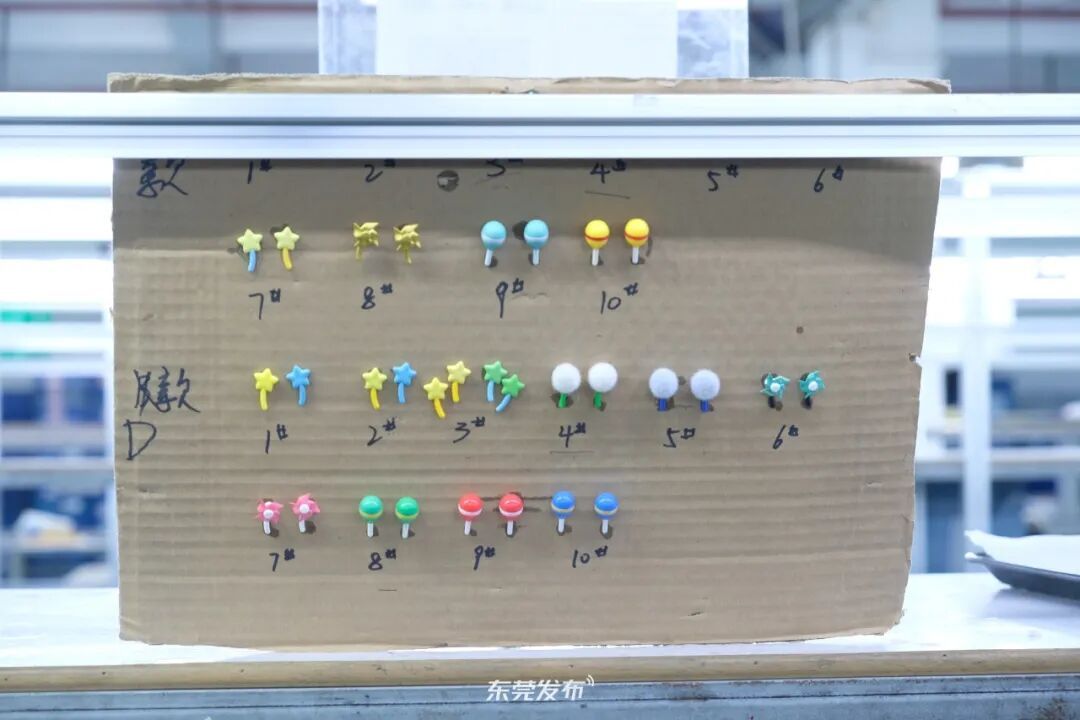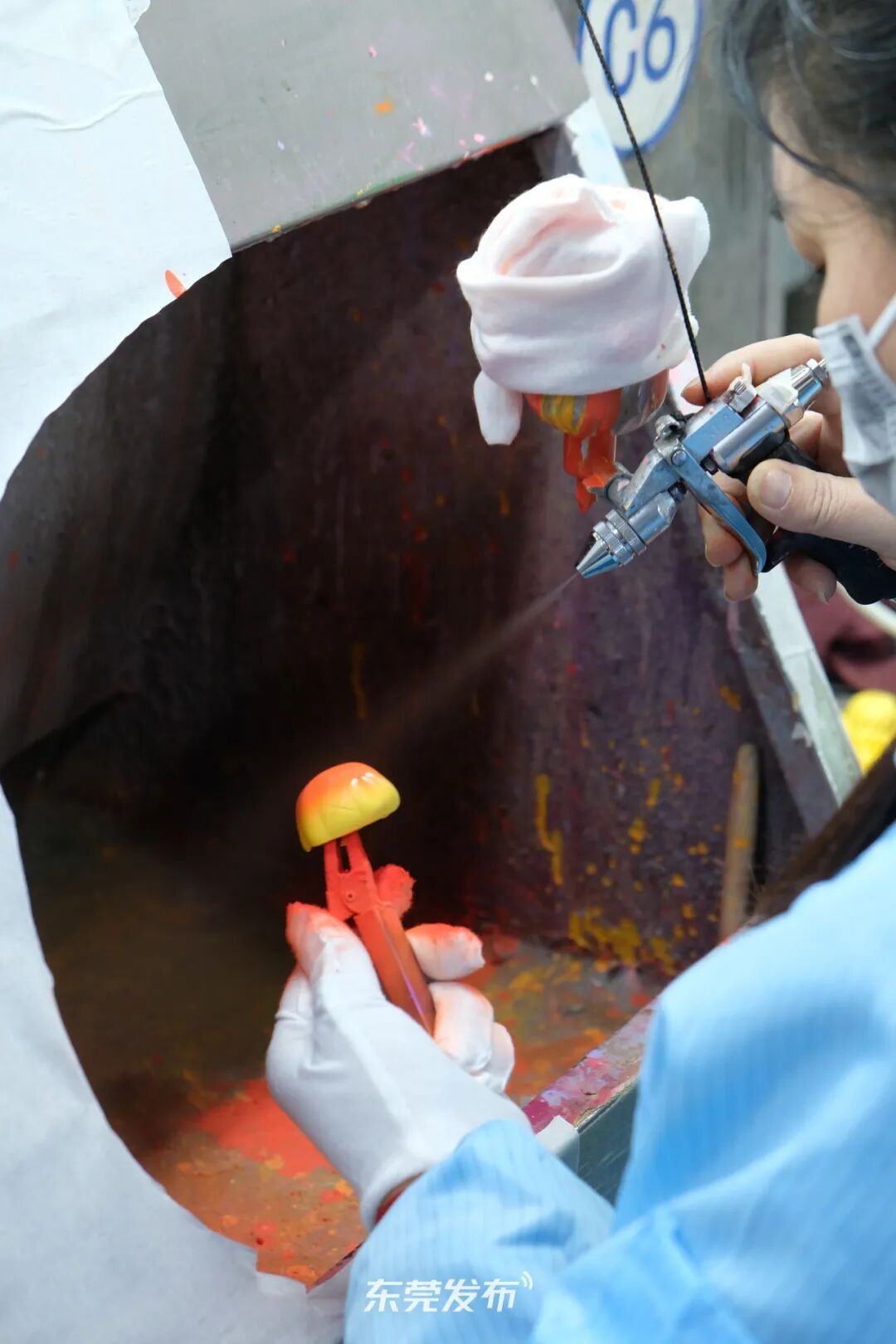 可转动的风车不到指甲盖大小;握持着不同道具的手部,拇指宽度只有2毫米,每根手指轮廓清晰可见;哑光、渐变色、电镀色,还有夜晚可发出荧光的星星……工厂严格把控各种材质、上色的出品,在细微之处体现着东莞制造的美学质感。