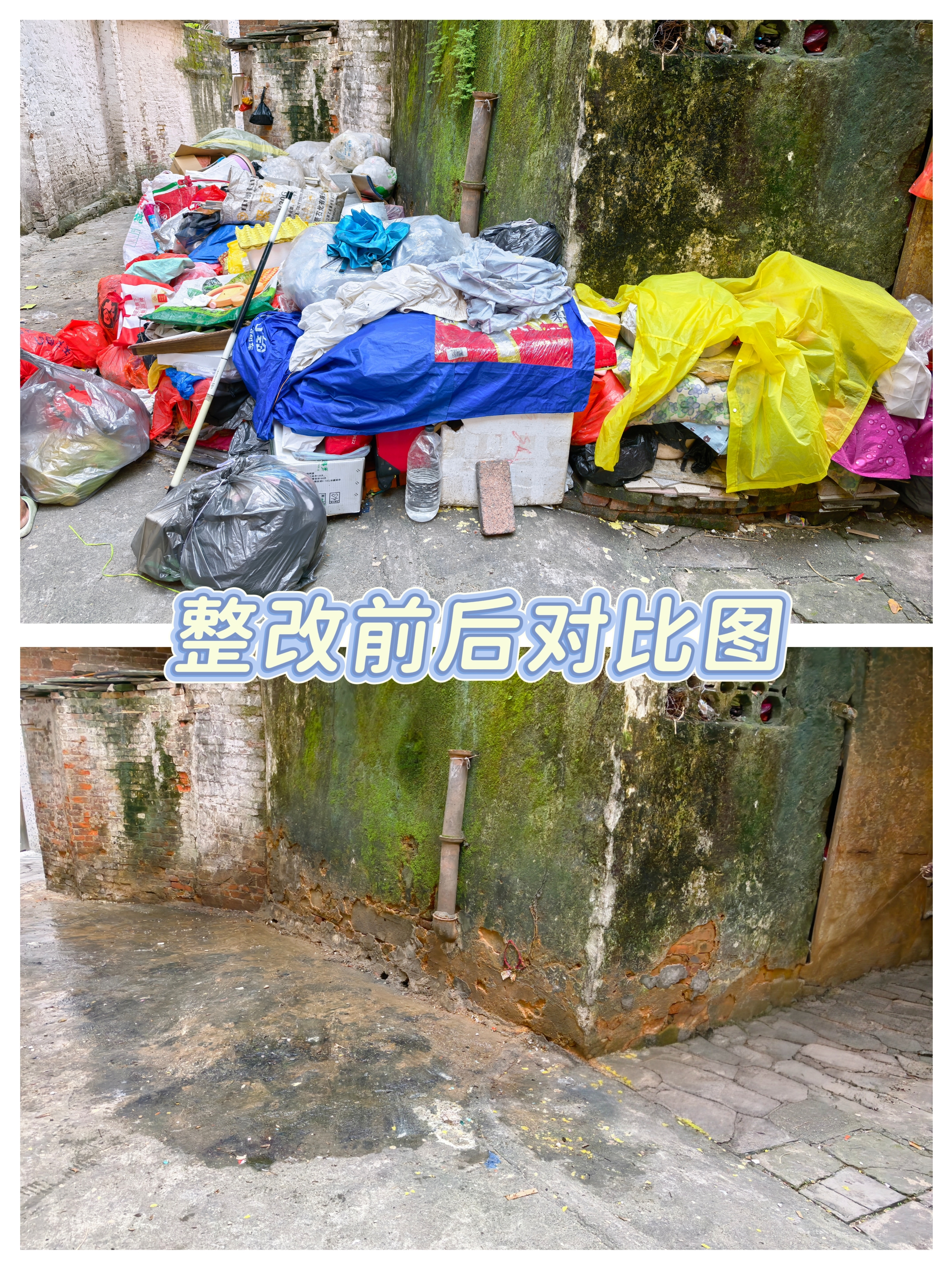房屋外围整改前后对比图。