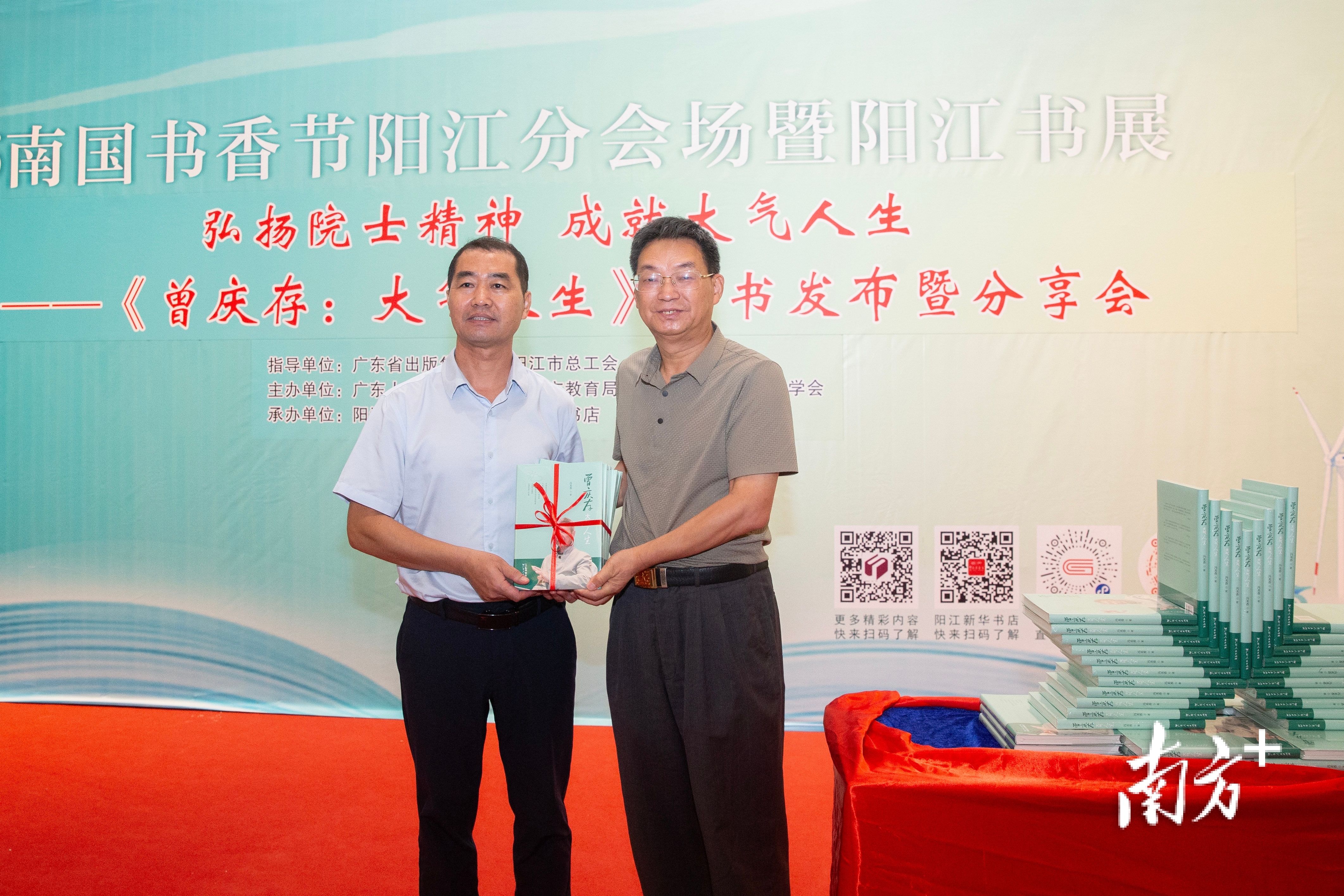 上午11时许,随着红绸缓缓揭开,《曾庆存:大气人生》一书正式与读者见面,随后,广东人民出版社向阳江市图书馆捐赠了首批新书。