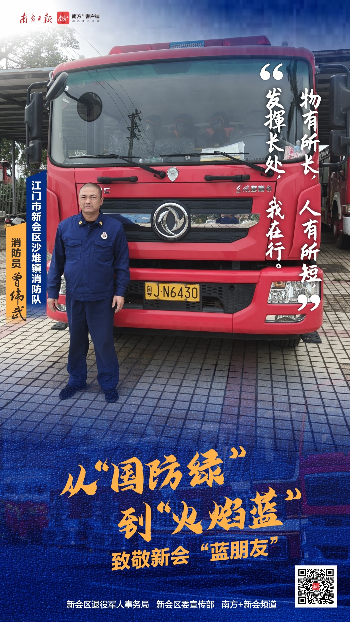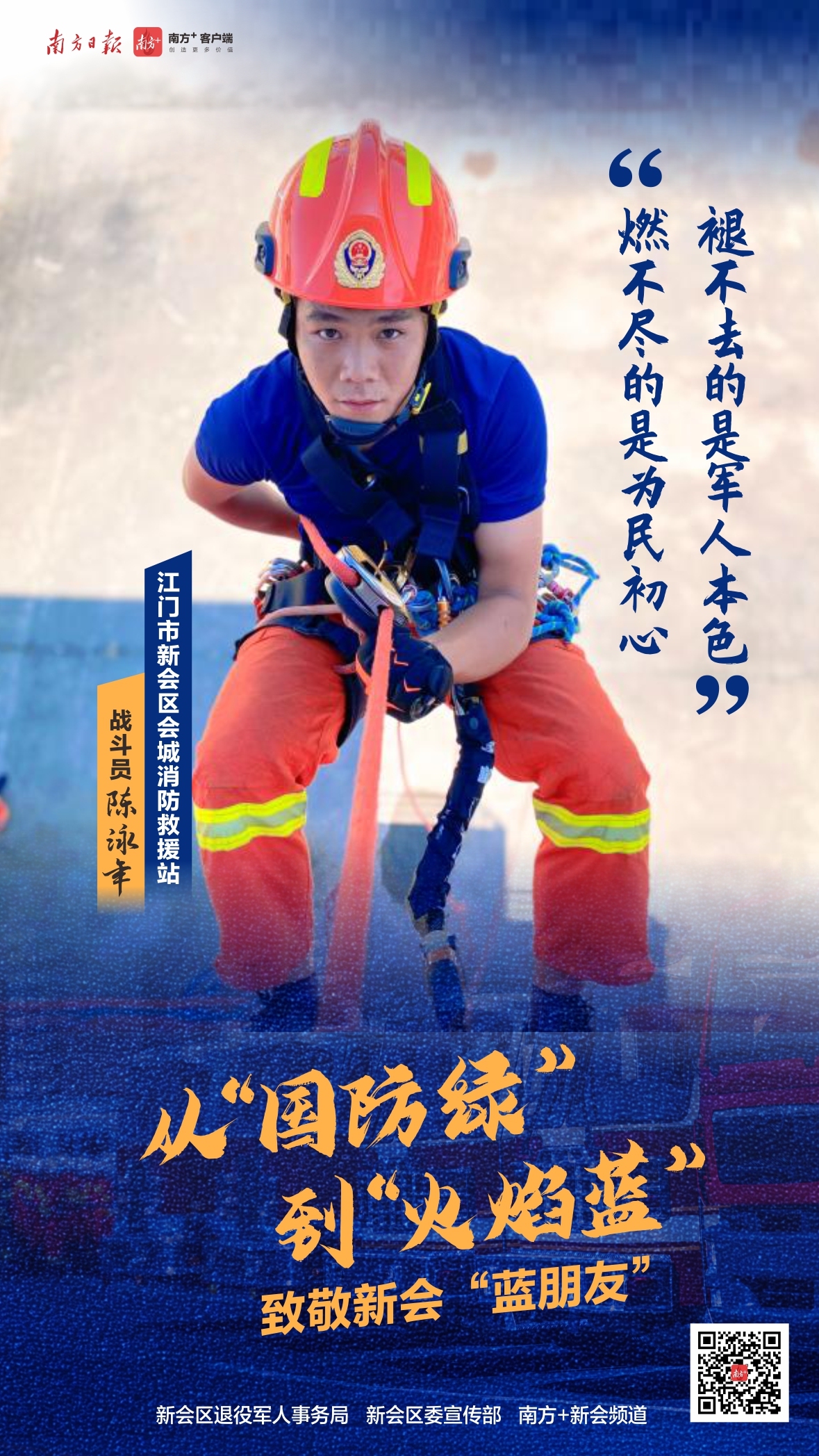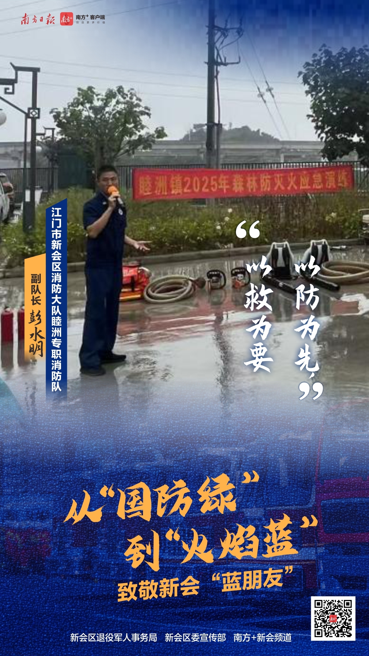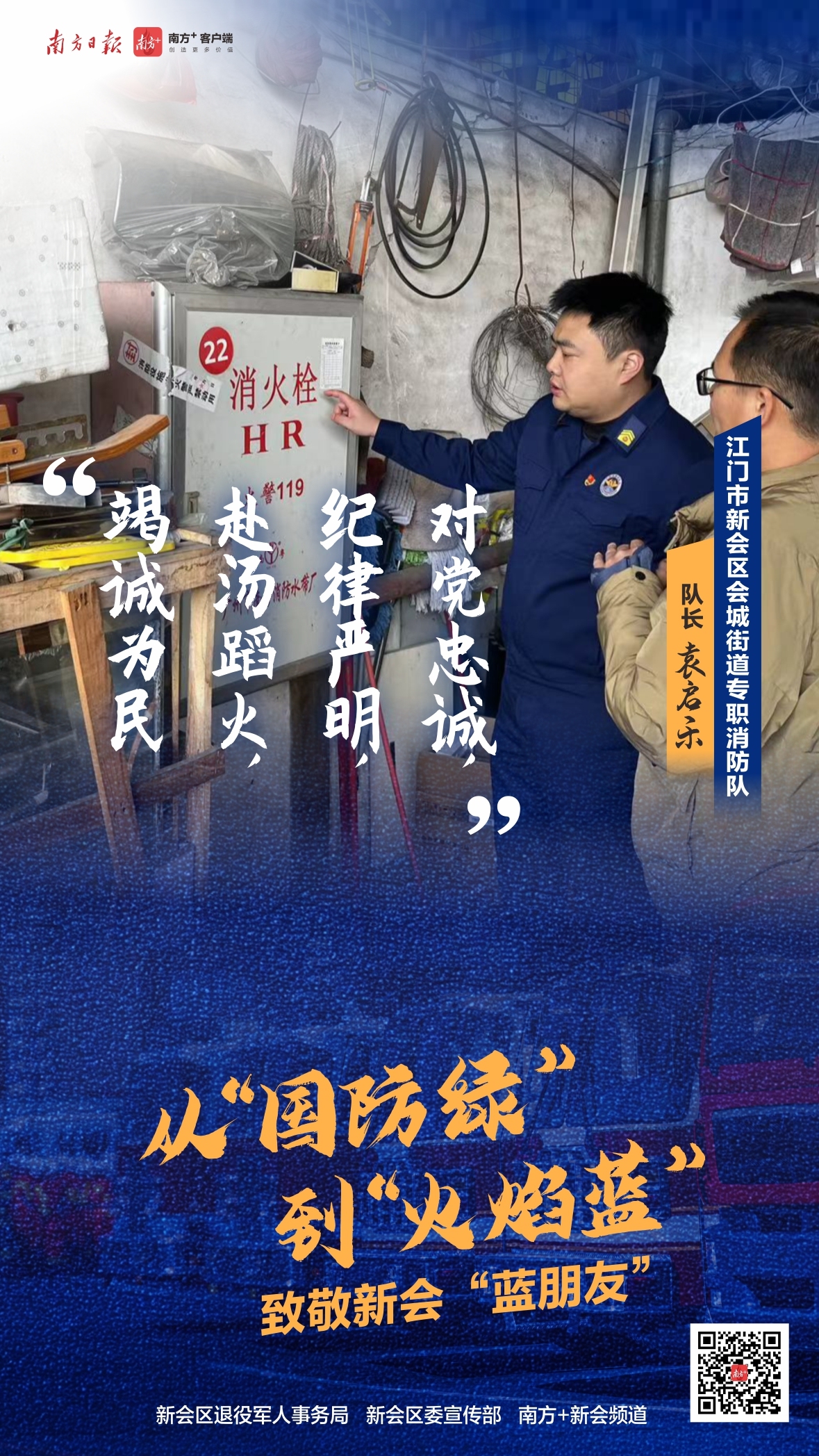 曾经,他们身披“国防绿”,将青春热血熔铸进保家卫国的钢铁长城;如今,他们身着“火焰蓝”,把忠诚担当奉献给赴汤蹈火的应急救援。11月迎来了第34个全国消防日,让我们一同走近江门新会这群特殊的守护者——他们既是退役军人,也是消防尖兵。身份在变,阵地在转,唯守护的誓言始终如一——守护万家灯火。