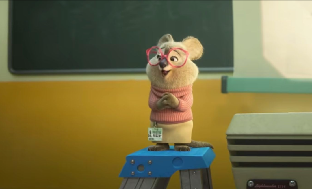 电影开篇先回顾了第一部的内容:绵羊市长想要陷害肉食动物,被朱迪和尼克识破。这里英文字幕把前情提要的before改写为be-fur,中文则选择了“前情蹄要”。这个翻译不错,但还是少了一个微小的呼应。毛发(fur)是哺乳动物的核心特征之一,前作里的动物都是哺乳动物,本作就开始重点关注爬行动物了。