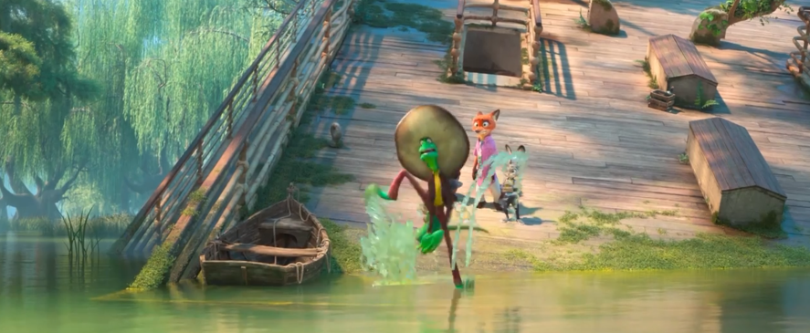 酒吧被突袭,再次逃跑。这一场戏警官各显神通,嗅觉很好的野猪负责闻气味,而在水下跑步飞快的河马负责追。蛇盖瑞逃进了水路“红线”,虽然这不是树栖蛇习惯的环境,但毕竟蛇是变温动物,基础代谢超低,憋点气不怕。狐狸和兔子就真的差点淹死,然后进入吵架环节。