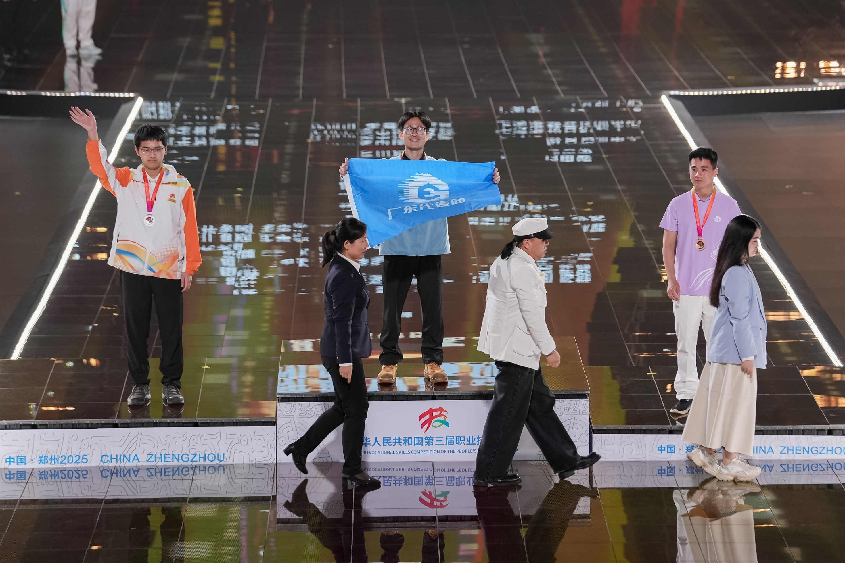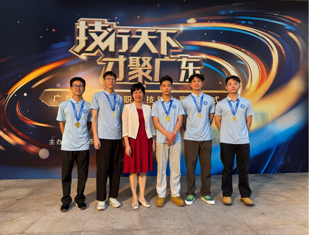 张天煜(左一)在广东省第四届职业技能大赛夺得项目金牌