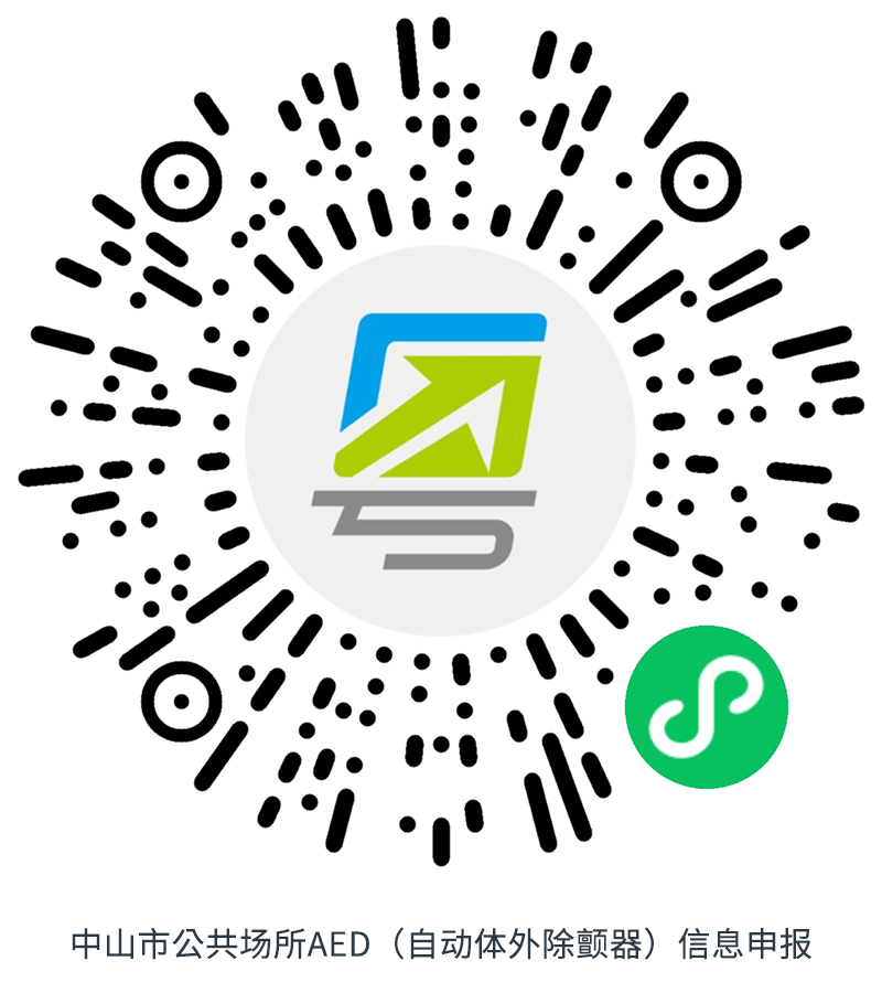 为完善中山市AED分布地图,若您的单位(机关、学校、体育馆、商场、交通枢纽、社区中心等)已安装AED,欢迎进行申报!请扫描“中山市公共场所AED(自动除颤仪)信息申报”二维码,登记设备信息。您的贡献,能让更多生命在紧急时刻得到救助。