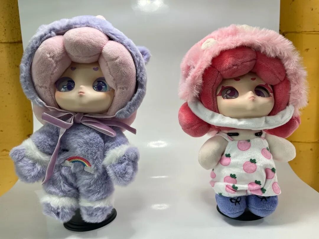 在潮玩中心3号楼的六楼,东莞市富之馀工艺品有限公司(以下简称“富之馀”)租下了300多平方米的办公场所。展架上,菇噜噜、兔兔龙、猫猫龙等热门IP形象琳琅满目,这些造型可爱、设计独特的潮玩产品吸引了众多消费者驻足观赏。