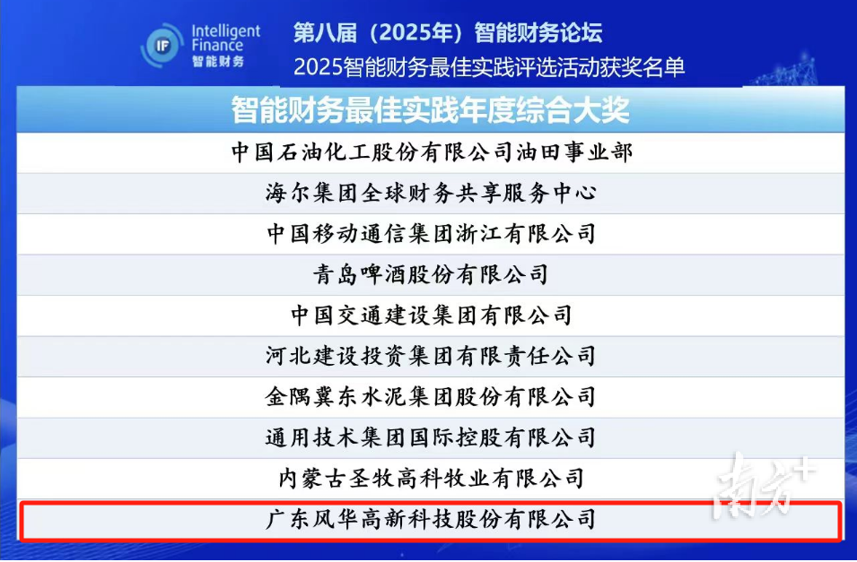 此次评选历时近8个月,历经单位申报、专家初评、现场调研、专家终评、公众网络投票环节的层层筛选而得出。风华高科荣获“智能财务最佳实践年度综合大奖”,彰显了公司在智能财务与企业数字化融合创新领域的领先地位与实践典范价值。