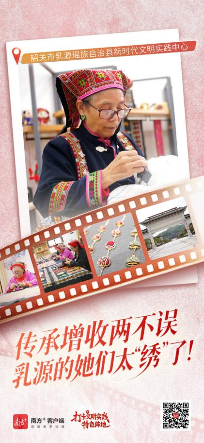 “有山便有瑶、有瑶便有绣、有绣便有彩、有彩便有色。”在韶关市乳源瑶族自治县,新时代文明实践中心正成为激活千年瑶绣的新引擎。当地依托全县文明实践阵地,构建起“培训+产业+就业”全链条服务体系,将瑶绣非遗传承与妇女就业、乡村振兴深度融合,带动全县超3200名瑶族妇女在家门口“绣”出就业路。(详情>>)
