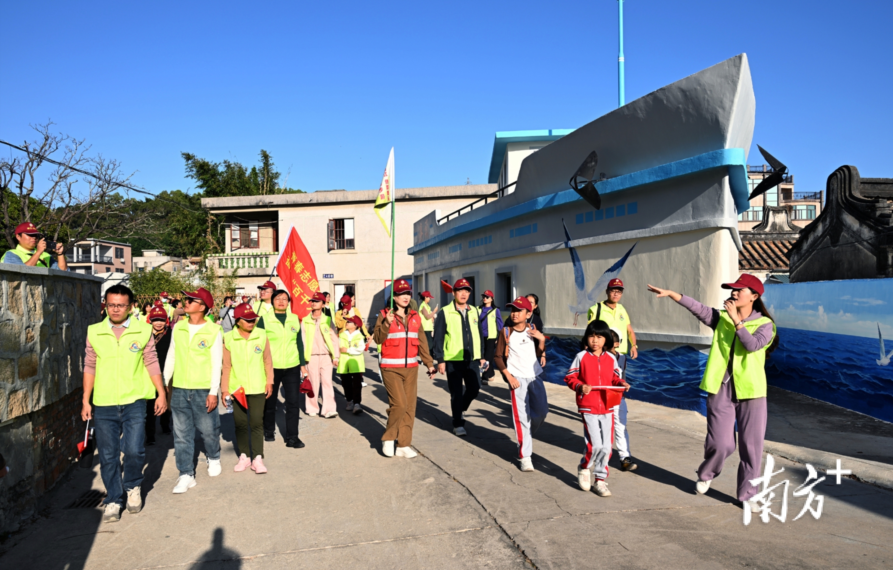 徒步途中,参与者们真切感受澳头侨乡新貌。从休闲文化广场到承载家族故事的许氏、吴氏、朱氏祠堂,从清新雅致的榕岛到充满侨韵的国际海员俱乐部、火船巷,红砖古厝间、青石板路上,每一步都踏入六百多年的岁月长河,仿佛能听见“番客”远渡重洋的脚步声,乡村新景与侨乡往事在时光中交织成画。