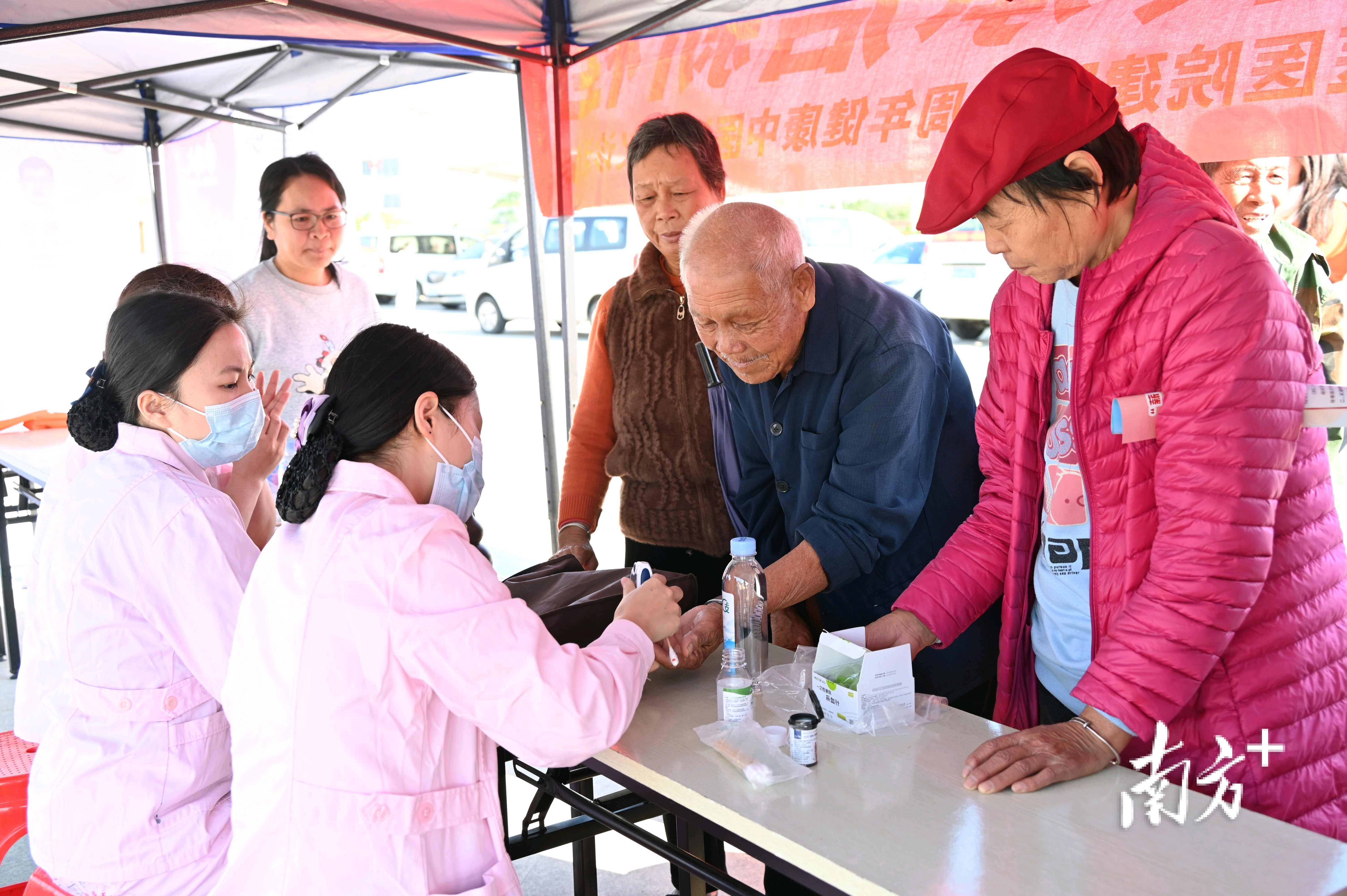 清晨的表竹村渐渐热闹起来。来自阳江市中医院内科、骨科、五官科等科室的十余名医护人员早早到位,血压、血糖、视力等免费检测点准备就绪。随着城镇化和老龄化加剧,村里空巢老人的健康日渐成为关注重点。