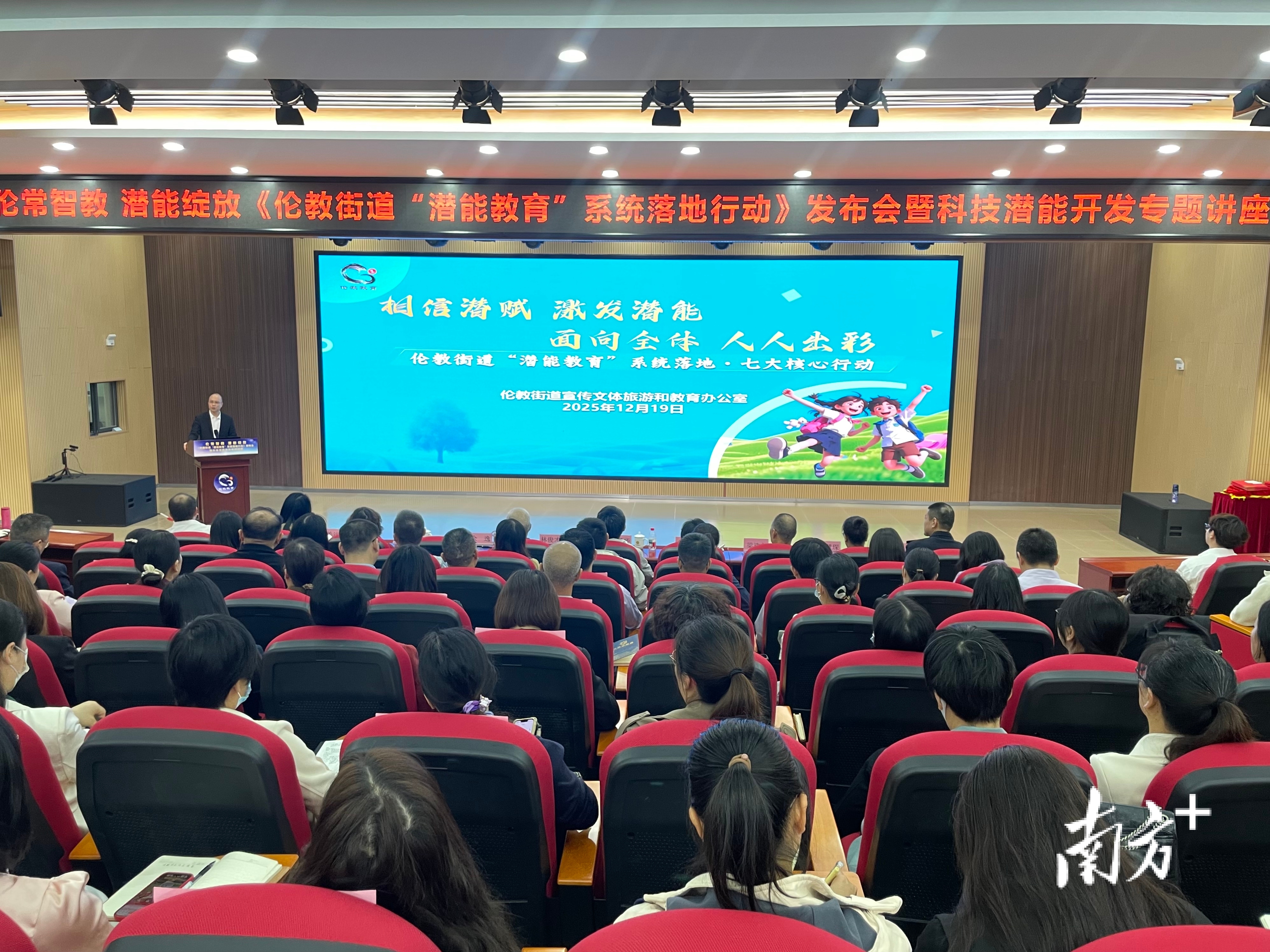 12月19日,佛山市顺德区伦教街道“潜能教育”系统落地行动发布会暨科技潜能开发专题讲座在周君令初级中学举行。