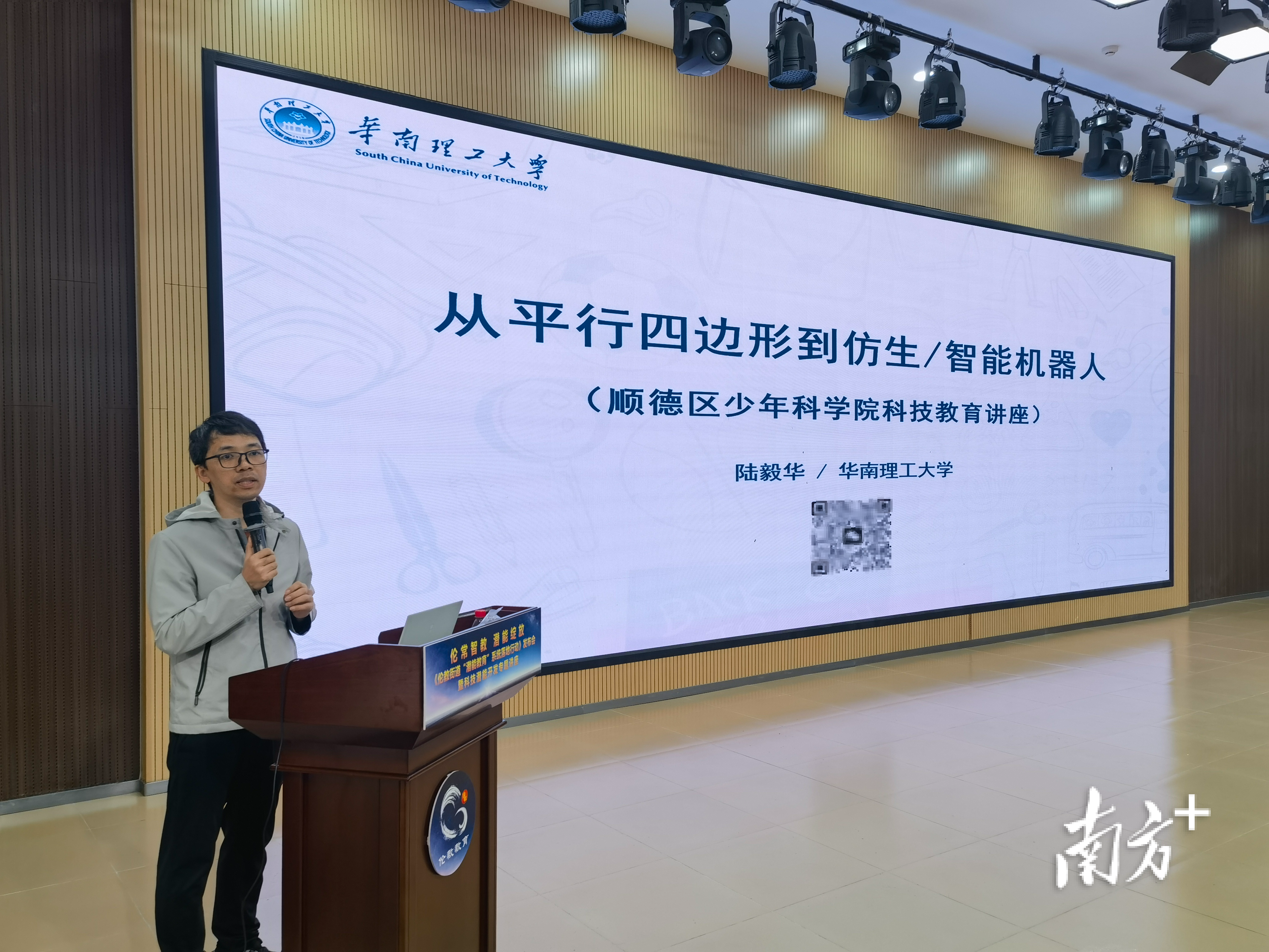 活动上,作为“七大核心行动”中“课堂改革”与“课程建设”的关键实践,陆毅华以《从平行四边形到仿生/智能机器人》为题,为同学们带来一堂别开生面的科技潜能激发讲座。