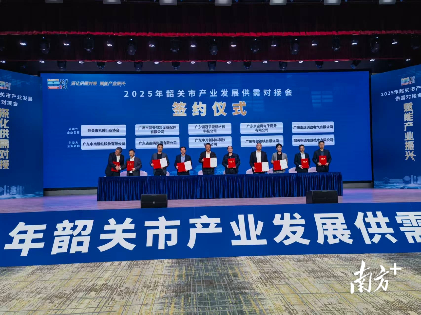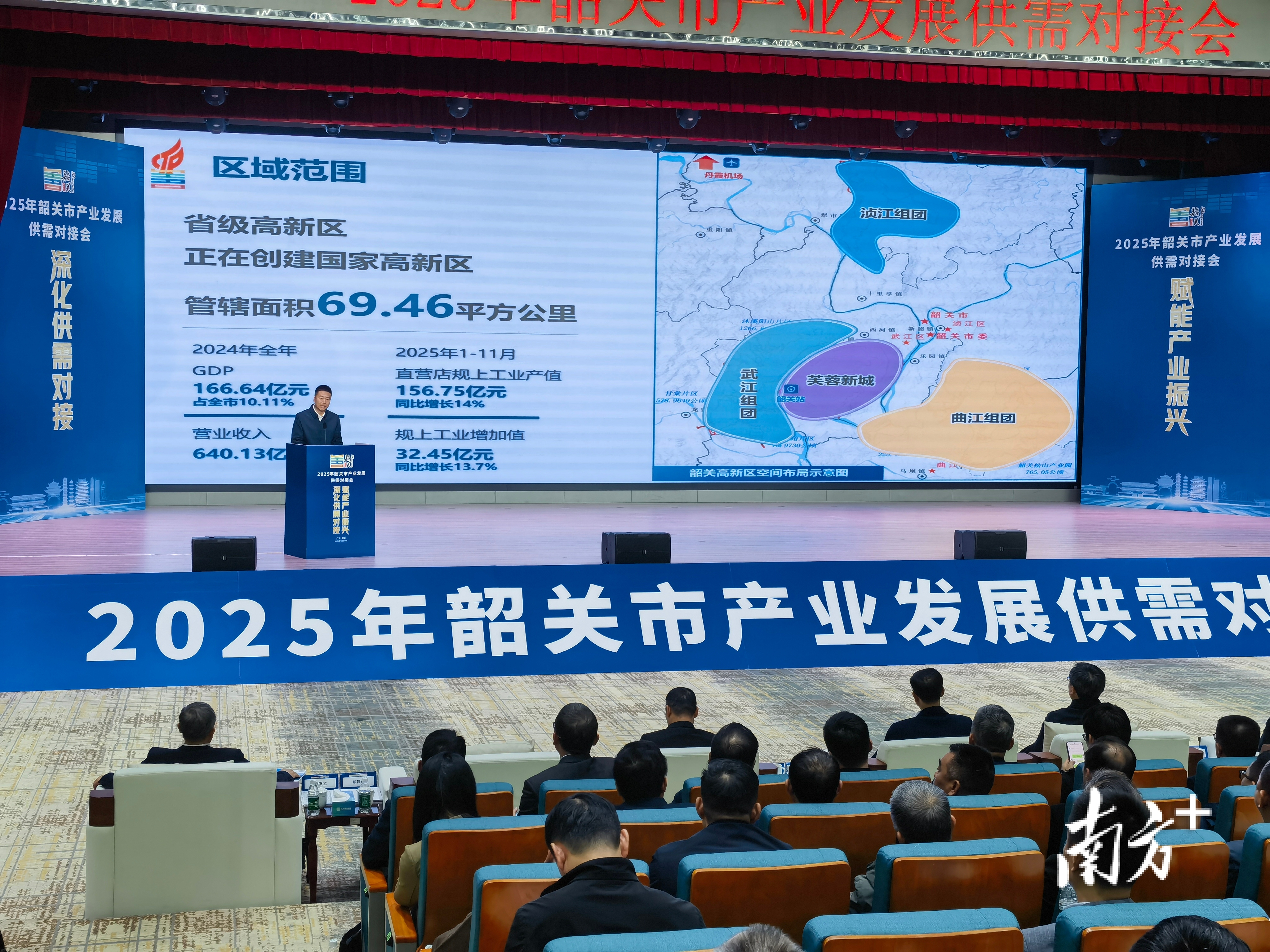 12月19日下午,由省工业和信息化厅指导,韶关市人民政府主办,韶关市工信局、韶关高新区联合承办,以“深化供需对接,赋能产业振兴”为主题的2025年韶关市产业发展供需对接会在韶关粤港澳大湾区数据应用产业园举行。活动汇聚约600名政企代表,其中企业代表450家,涵盖先进材料、先进装备、建材、大数据及电子信息等多个重点领域,打造年末产业合作“超级对接场”,以高规格组织确保供需对接精准高效。活动现场签约项目达214个,总金额81.86亿元。