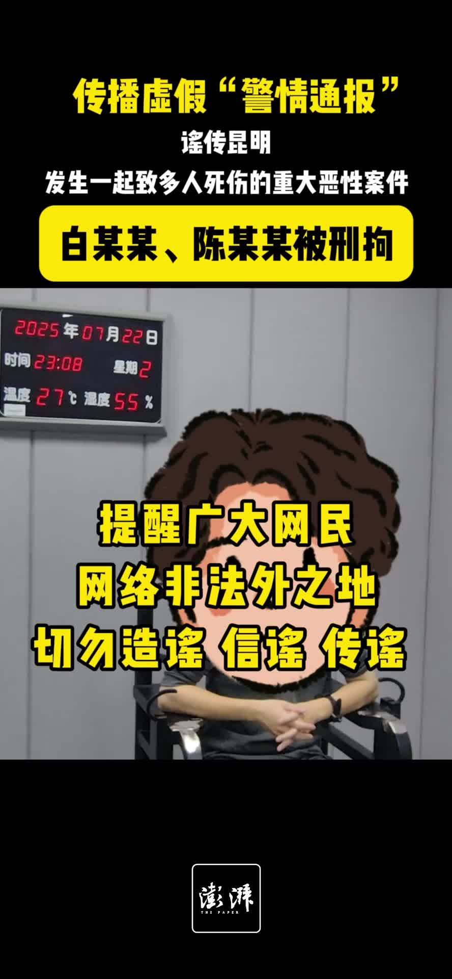 伪造警情通报造谣“昆明发生多人死伤案”,2男子被刑拘