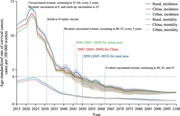 模型预测中国可以消除宫颈癌,但不行动永远是0