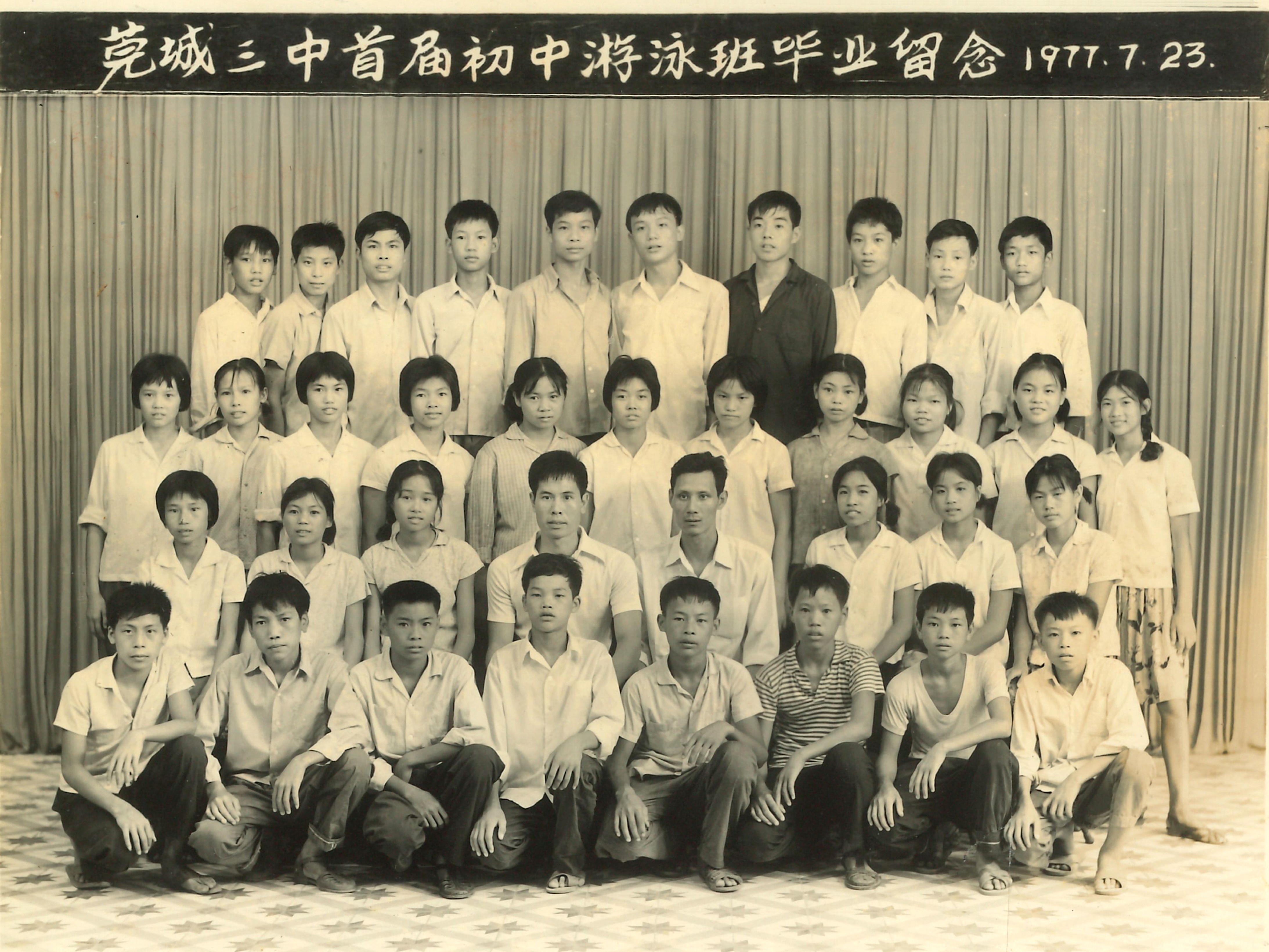 1977年,莞城三中首届初中游泳班毕业留影