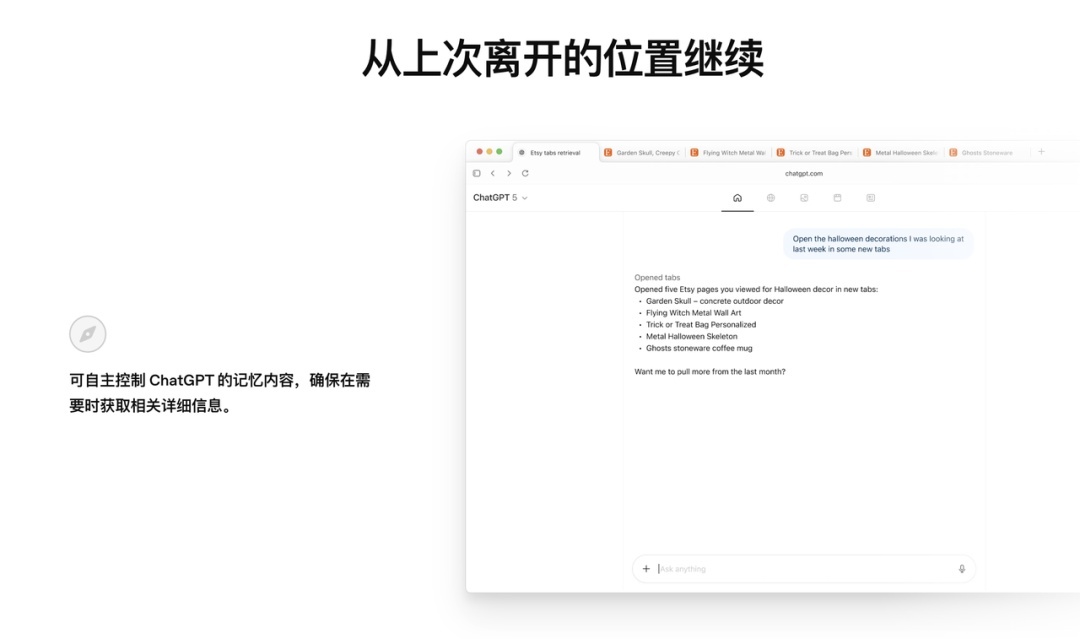 “记忆”是 Atlas 核心卖点之一|图源:ChatGPT