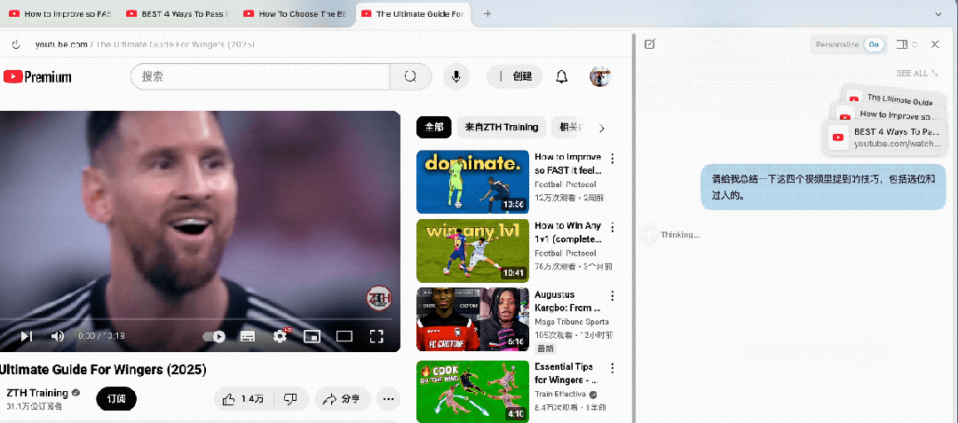直到 AI 出现后,AI 插件几乎是一夜之间占领了浏览器侧边栏。你能随时在网页右侧唤出“ChatGPT 们”,让 AI 帮你总结网页,实时翻译 YouTube 视频。