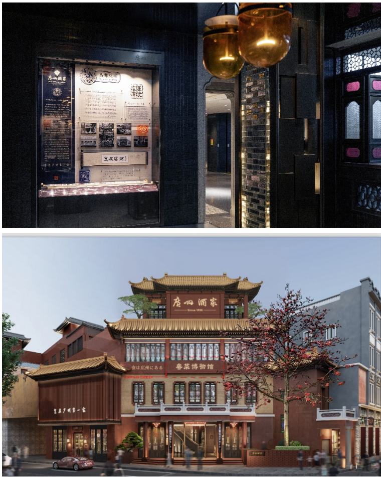 这种"博物馆餐厅"的创新模式让消费者在真实文博空间品鉴地道粤菜,"观、学、品"三位一体的独特模式,让抽象文化历史化为可感可品的体验,以餐饮文化高地赋能经营,形成了一条极具辨识度、以粤菜文化为核心的新国潮文商旅融合发展特色路径。
