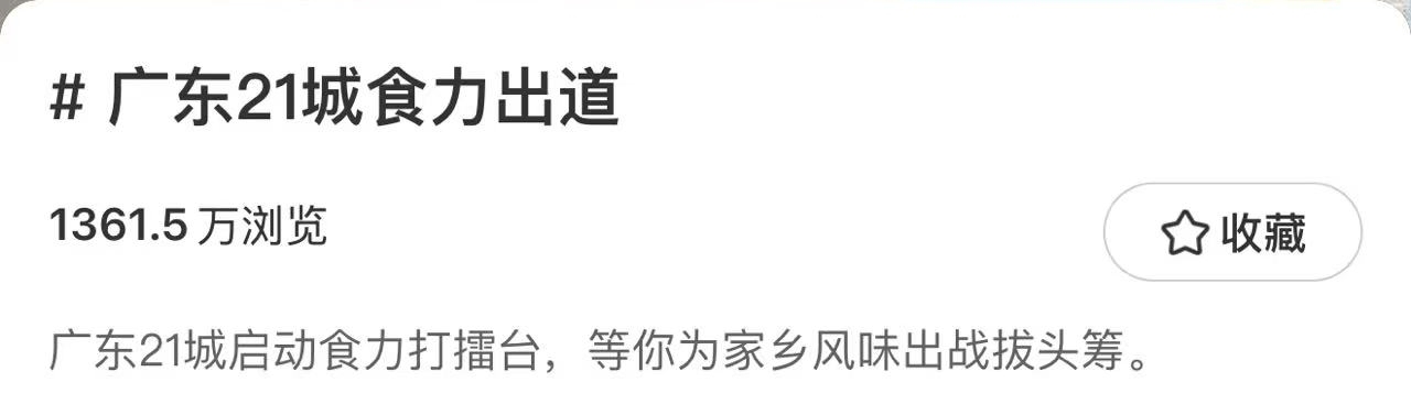 活动一经推出便引发全网关注,截至10月22日,“#广东21城食力出道”话题浏览量已经突破1361.5万次。