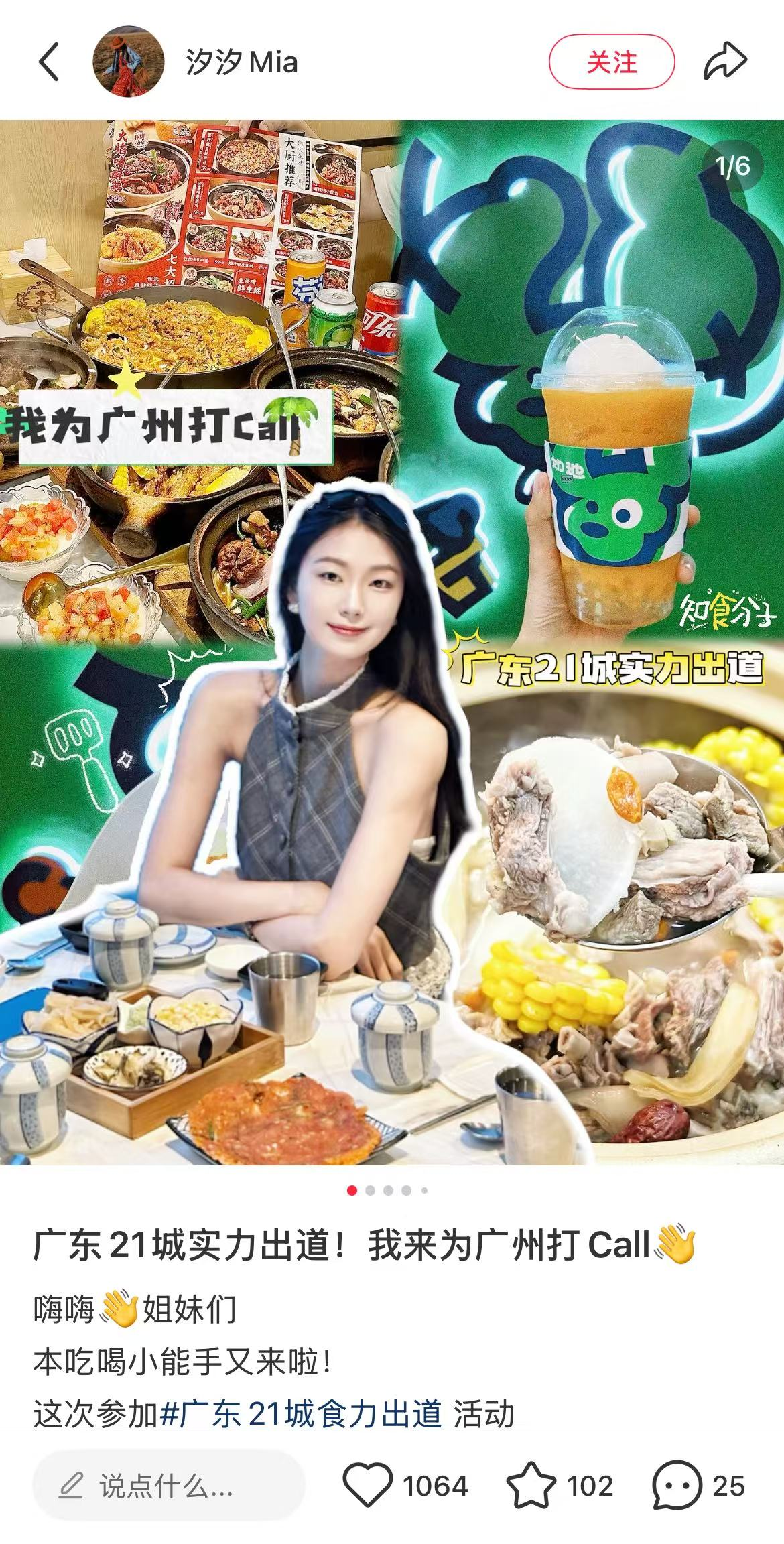“这次参加#广东21城食力出道 活动,我要为广州美食疯狂打Call!!广州美食真的太多太多啦!”在小红书拥有超30万粉丝的知名博主“汐汐Mia”分享道。