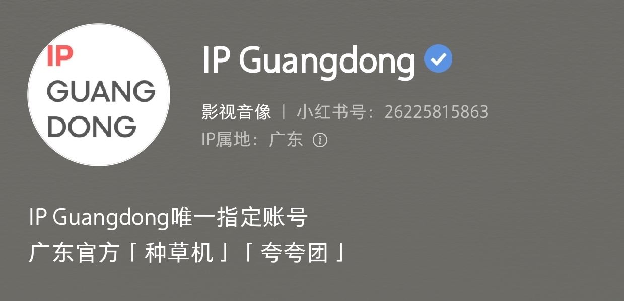 IP Guangdong是由广东省委宣传部主办、南方报业传媒集团South运维的广东形象全资源共享平台,于2025年7月2日正式上线。IP Guangdong小红书官方账号以“广东官方‘种草机’‘夸夸团’”为定位,旨在分享“最岭南风光”“最粤式滋味”“最IN生活方式”,打造粤港澳大湾区“潮流实验室主理人”。
