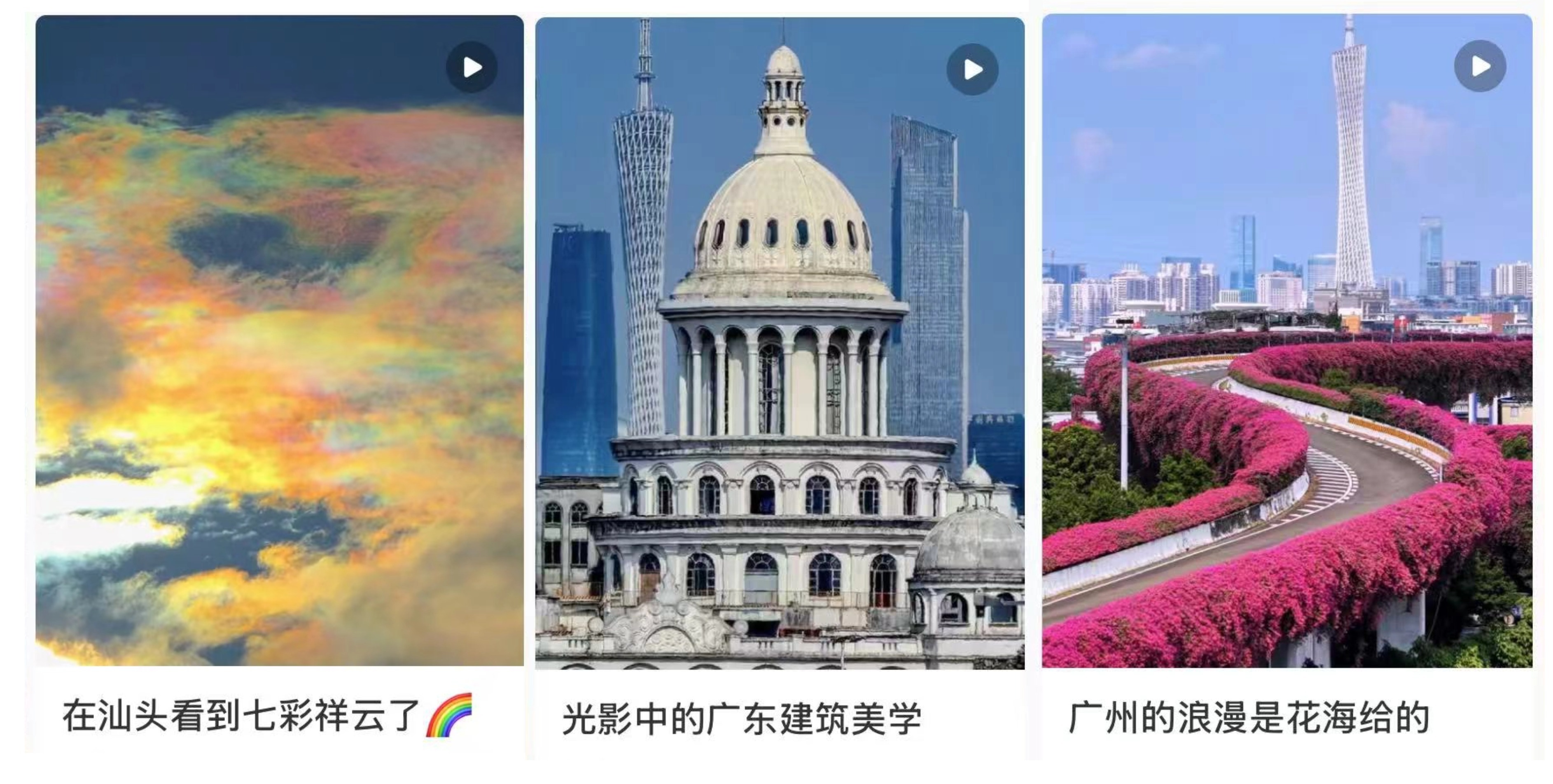 自账号创建以来,IP Guangdong小红书账号持续发布有关广东21城的美景、美食,分享具有岭南特色的在地体验,诸如“在汕头看到七彩祥云”“广州的浪漫是花海给的”“光影中的广东建筑美学”等主题,一经推出便得到众多小红书用户“一键三连”。