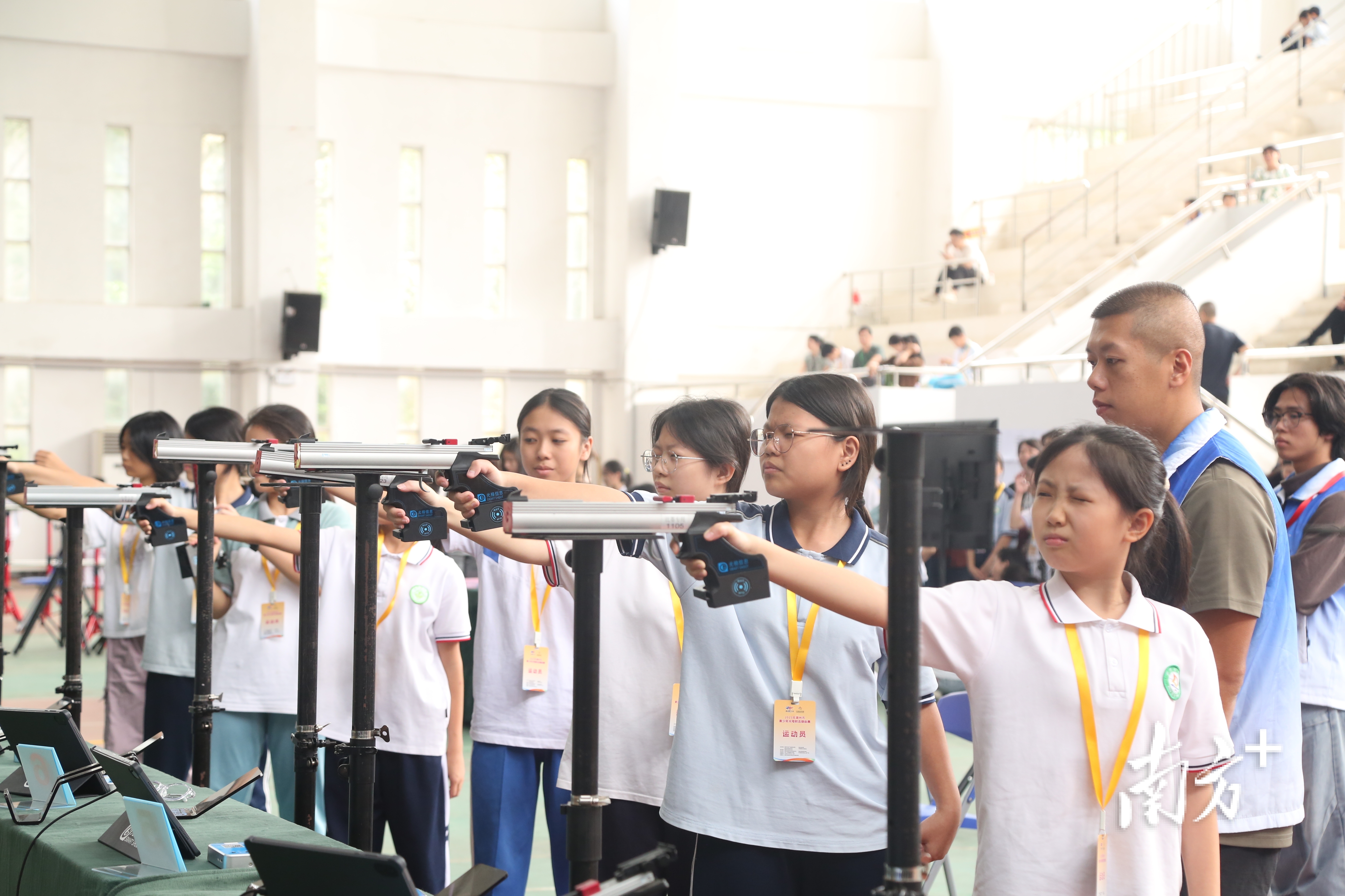 “今年参赛人数多,选手的质量也都很好。”潮州市光电射击协会会长蔡益武介绍,近年来,协会致力于将项目推广到乡镇和山区学校,争取挖掘更多优质苗子。