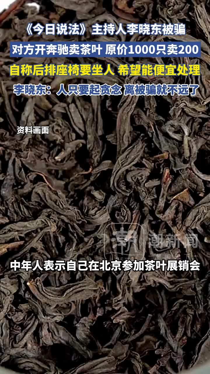 11月1日,《今日说法》栏目主持人李晓东在社交平台上发布视频称,近日,他被骗1000元购买茶叶。经历此次骗局,李晓东在视频中表示,“诈骗手段总有一款适合你。”他认为,“人只要起贪念,距离被骗就不远了”,希望大家以自己为戒。