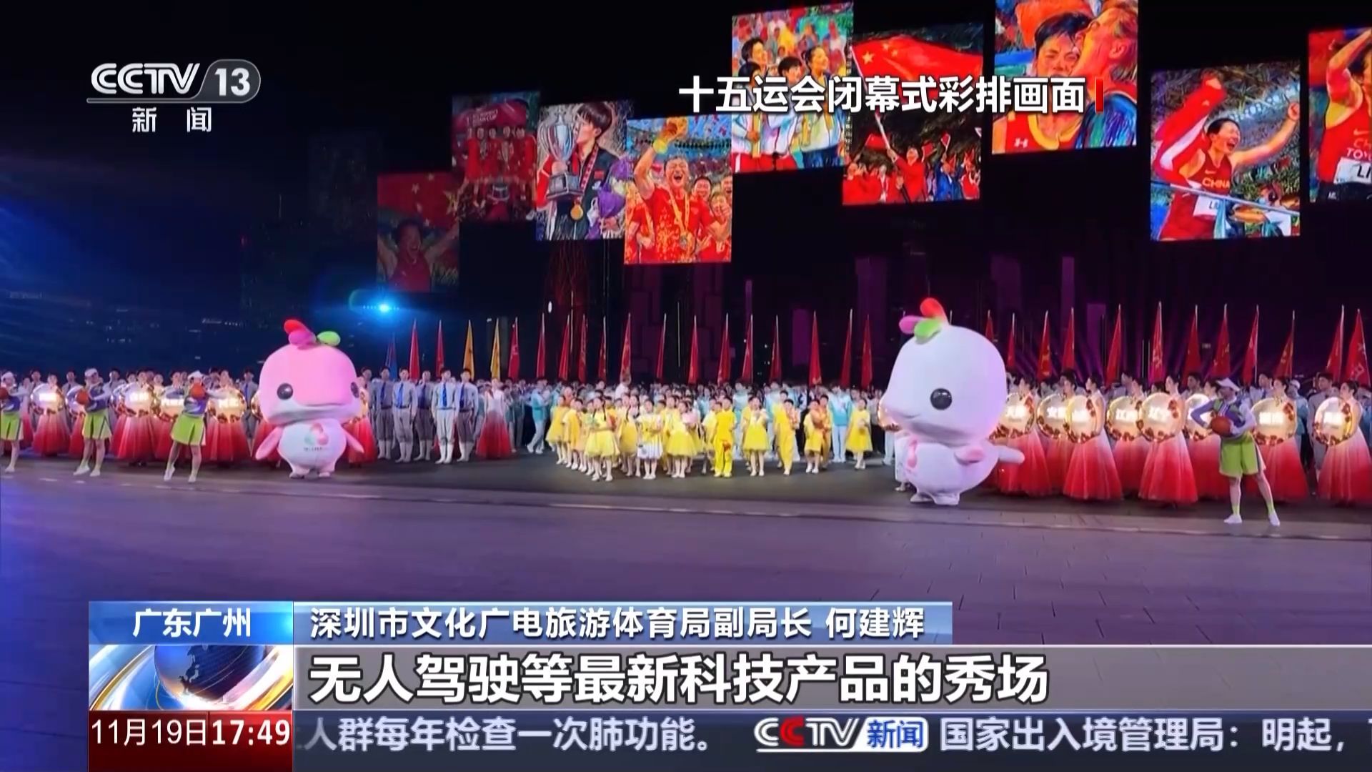 深圳市文化广电旅游体育局副局长 何建辉:给大家剧透一下,即将举行的十五运会闭幕式还将是一个汇聚液态画布、裸眼3D、智能穿戴、5G云控、无人驾驶等最新科技产品的秀场。