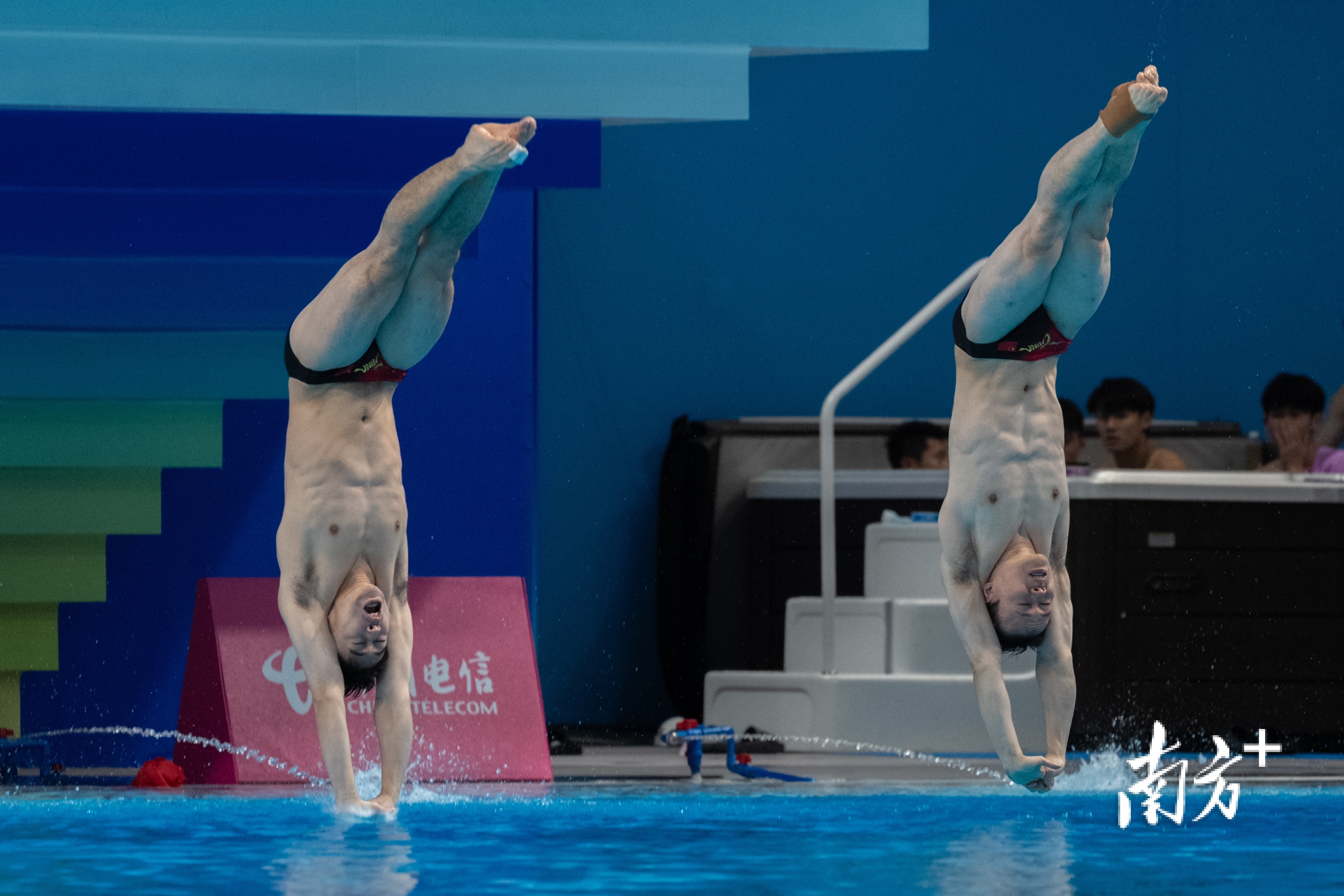 3日上午,双人3米跳板率先开赛。广东队组合谢思埸/黄博文、郭昊宇/胡宇康与湖北组合王宗源/郑九源展开激烈较量。