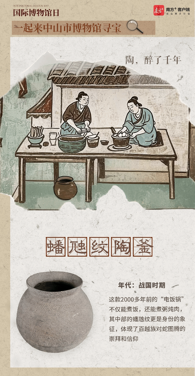 在这里,你可以与“海上香山”不期而遇,沉浸式体会“风起伶仃洋”的故事;可以透过新石器时代镂孔圈足彩陶盘,了解5000年前人们在香山土地上生活的点滴;还可以走近战国时代蟠虺纹陶釜,与2000年前的“多功能饭锅”不期而遇......