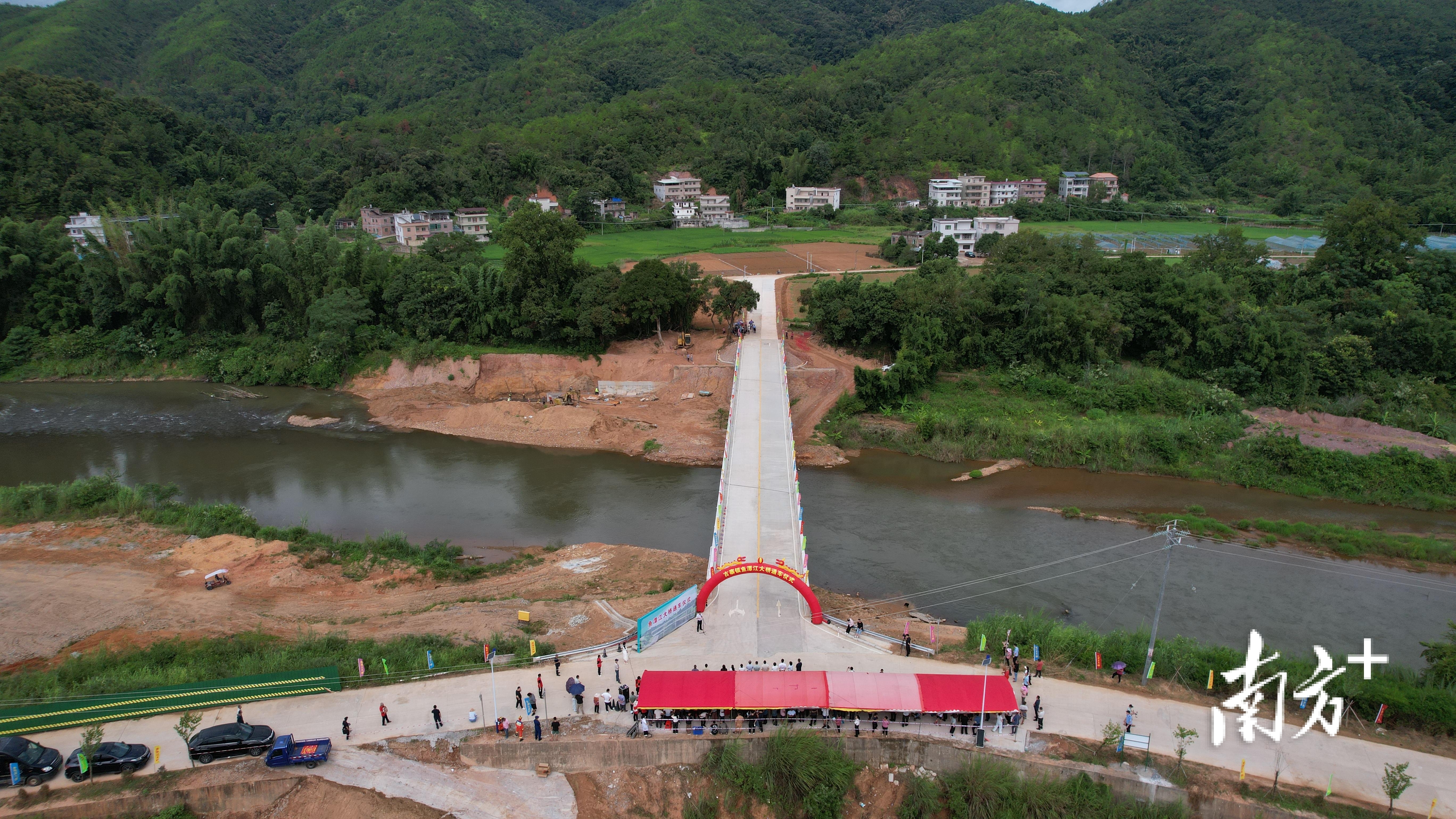 9月9日,河源市和平县古寨镇水西村鱼潭江大桥正式通车。这座宽阔坚实的新桥取代了服役12年的危旧铁索桥,解决了当地5000余名村民出行难题,为乡村振兴注入新活力。