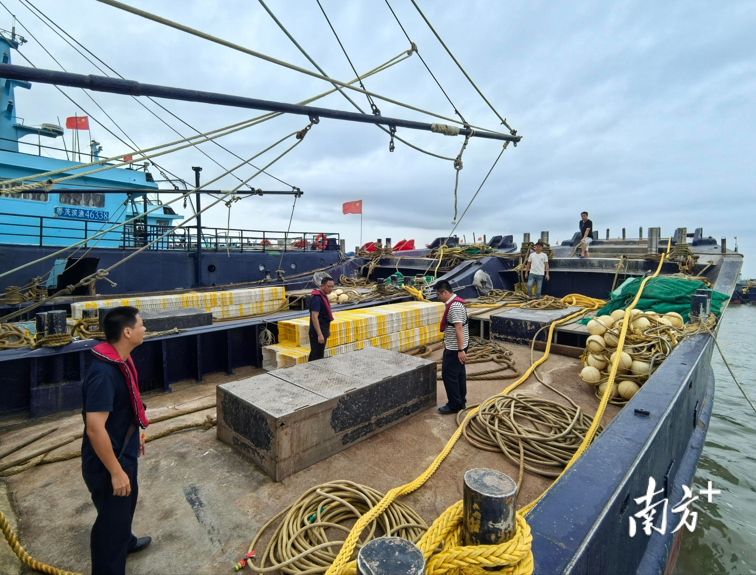 “所有渔船必须确认锚绳加固、船员全部撤离,缺一不可!”在水东港码头、东山渔港,电子屏、喇叭滚动播放着“防台风须知”“严禁出海”的警示,电白区农业农村局执法人员也沿着海岸线来回核查,确认渔船回港情况。在南海街道、岭门镇等沿海镇街,当地党员干部也逐一对船只进行核实,并登船检查锚绳加固、物资转移情况。