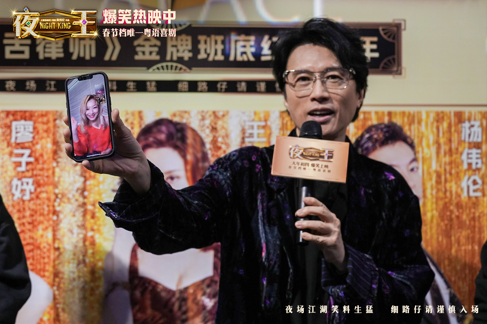 春节假期期间,由黄子华、郑秀文领衔主演的春节档唯一粤语喜剧电影《夜王》剧组来到广东广州、佛山等地路演宣传。2月20日的广州路演现场,导演吴炜伦、领衔主演黄子华惊喜现身,领衔主演郑秀文也惊喜现场连线,与黄子华默契“售后”,爆梗频出炒热现场气氛,笑声阵阵点燃观众热情。