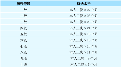 在规范参加工伤保险的情况下,职工发生工伤,并且经劳动能力鉴定机构鉴定,伤残等级达到一级至十级时,可以向工伤保险基金申请按规定领取一次性伤残补助金,具体待遇标准如下: