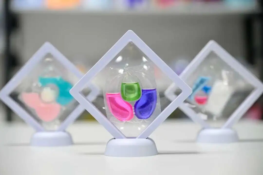 经过产品研发迭代、机器更新换代等多环节的精进,万缘实业在洗衣凝珠领域取得了令人瞩目的成就。其产品款式齐全,从单腔、三腔、四腔、五腔,到粉+液、留香珠+液等各种组合,应有尽有。“能够实现从单腔到五腔的突破,并且能加入粉剂、留香珠。实现5-25g全克重覆盖的,国内仅有2家企业,我们便是其中之一。这为我们构建起供应链壁垒,使我们能够随时满足市场上所有款式洗衣凝珠的需求。”郭一根自豪地表示。