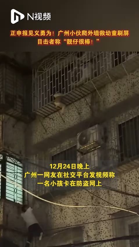 近日,在广州市天河区白马岗街58号发生暖心一幕。一名3岁男童卡在4楼阳台防盗网上,一名身穿白衣的小伙子率先徒手爬楼托起男童,成功将其推回家中。这段救人视频获网友点赞刷屏。当事人郭颖昕是一位“00后”,来自汕尾陆丰,主业是足球教练,副业是摆摊炸鸡。他说,“下次遇到这种情况,我还会这么做”。详情>>