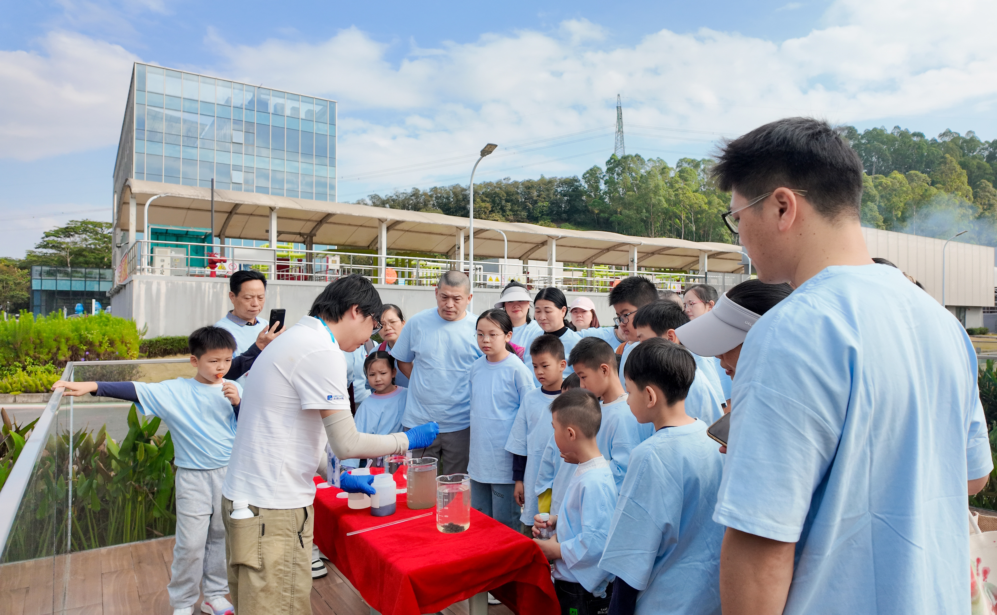 活动首站来到的是龙岗区横岭水质净化厂,作为深圳市重要的环保设施向公众开放单位和环境教育基地,其长期致力于面向社会,特别是青少年群体开展水环境科普教育。本次活动是精心打造的研学课程体系的一次生动实践,通过系统化的参观、互动和实验模块,让家庭观众深入了解了水资源循环的完整链条,揭开城市污水由“浊”变“清”的全过程。