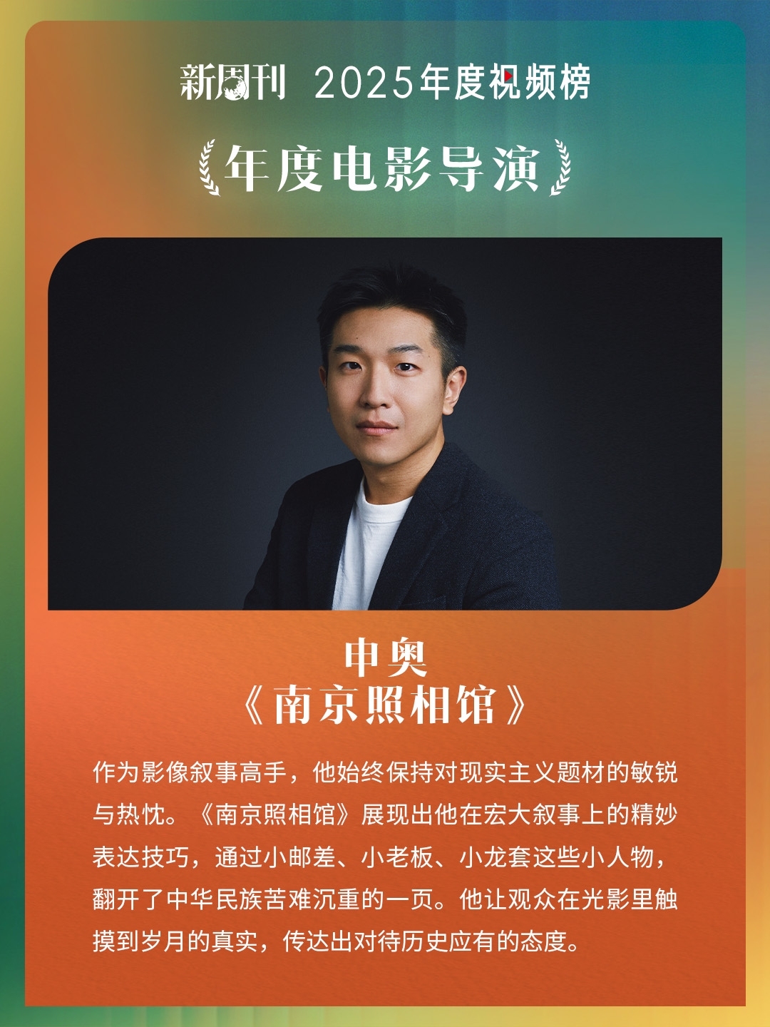 导演申奥凭借《南京照相馆》获得“年度电影导演”。影片透过一家照相馆的方寸镜头,让观众在光影里触摸到岁月的真实。制片人王超文代为领奖时表示,申奥导演将继续用作品记录历史、传递真相。